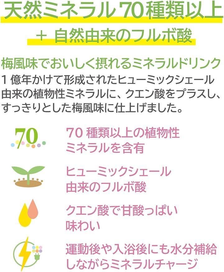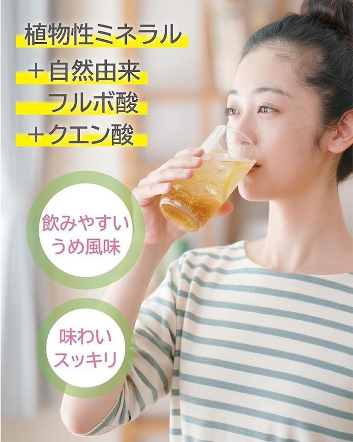「クエン酸配合・高吸収率98%」飲みやすい梅風味に仕上げつつ、イオン化されたミネラルは約98%という吸収率を実現。
