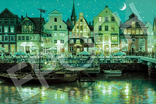 現代アートの人気作家・笹倉鉄平が描く、光と色彩が織りなす美しい風景がジグソーパズルになりました。人々の日常を温かい目線で描いた、幸せを感じる一枚。優しく点る街の灯りを眺めていると、一日の疲れを溶かしてくれそうです。街だけでなく、空もご注目。あら、お月様が・・。組み上げて飾った後は、光を蓄え、暗闇で幻想的に光ります。パズルのり・ヘラ付き