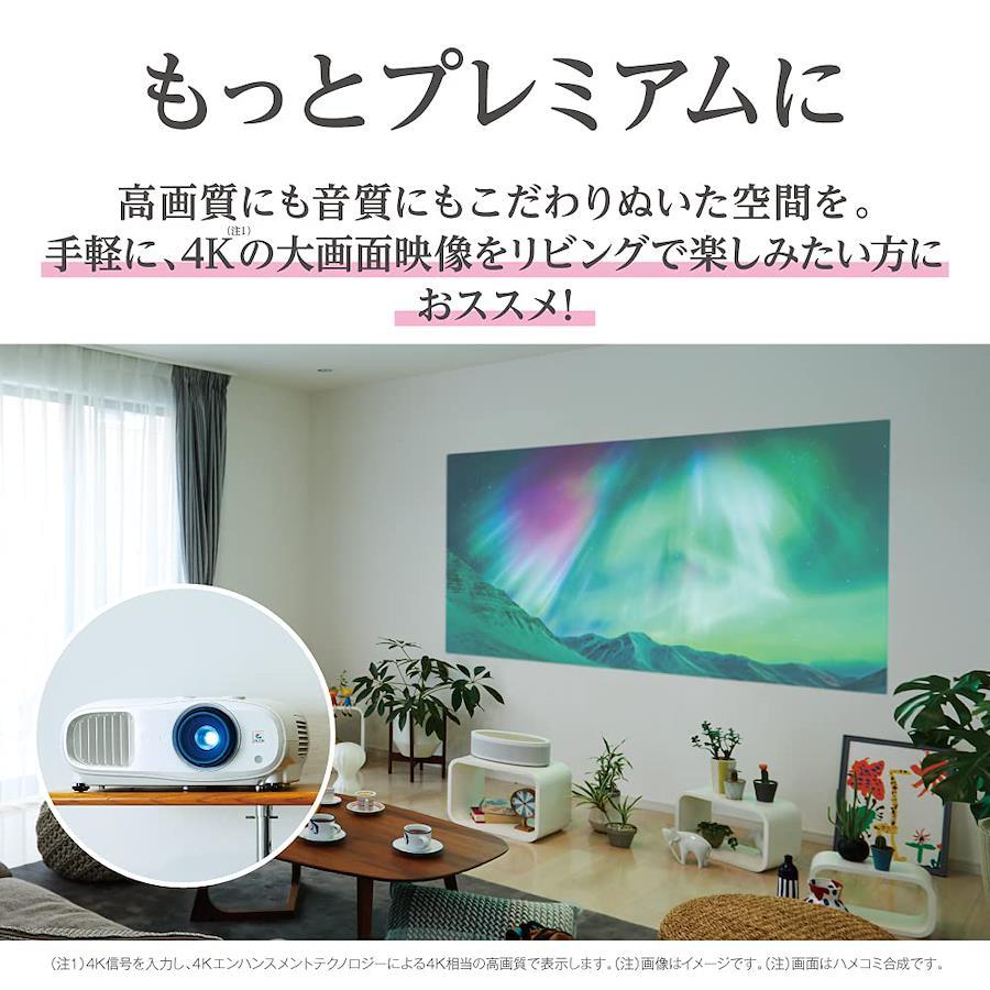 【様々な賞を受賞】下記の賞を受賞しております。ベストバイ2022 SUMMER プロジェクター部門1(40万円未満)5位/VGPプロジェクター2022 EH-TW7100(20万円以上30万円未満)金賞、EH-TW7000(15万円以上20万円未満)金賞/ベストバイ2022 WINTER プロジェクター部門1(40万円未満)5位/ VGPプロジェクター2022 EH-TW7100(20万円以上30万円未満)金賞、EH-TW7000(15万円以上20万円未満)受賞【3LCD方式とエプソンの光学技術による明るく鮮やかな映像】 3LCD方式採用することで、明るく色再現性・階調表現が高い映像を実現。明るいリビングで高画質の本格的なホームシネマを楽しむことができます。【美しいデザインと優れた設置性】レンジシフトとズーム機能で映像を上下・前後に動かすことができ、プロジェクターの設置位置の自由度が広がります。斜めから写した際の映像の歪みも「ピタッと補正※2」で簡単に台形補正できます。棚に置いたり、オプションの天吊り金具で天井へ設置したり、インテリアを邪魔せず様々なお部屋に設置できる家庭用プロジェクターです。【快適で便利な機能】EH-TW7100はスピーカーを内蔵しており、これだけで音響も楽しむことができます。お手持ちのBluetooth対応スピーカーとも接続が可能です。また、ゲームなどの動きの速いコンテンツに適した設定が可能なため、ゲームも快適に楽しむことができます。【安心のメーカー保証】プロジェクター保証規定: 1年間の無償保証期間中に、取扱説明書、本体貼付ラベル等に従った正常な使用状態で故障した場合には、本書の記載内容に基づき、無料修理いたします。※1:4K信号を入力し、4Kエンハンスメントテクノロジーによる4K相当の高画質で表示します。 ※2:プロジェクター本体の傾きや、設置位置による映像の台形歪みを解消し、スクエアに調整するエプソンの各種補正機能の総称です。 ※BluetoothはBluetooth SIG, Inc.の商標です。同梱物:電源コード(3.0m)/自照式リモコン(電池付)/取扱説明書/保証書