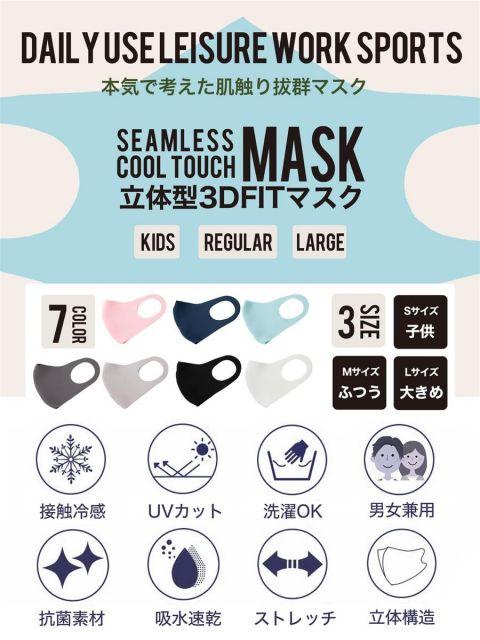 ひんやり接触冷感!洗える超立体マスク大人/子供SMLサイズ4枚組