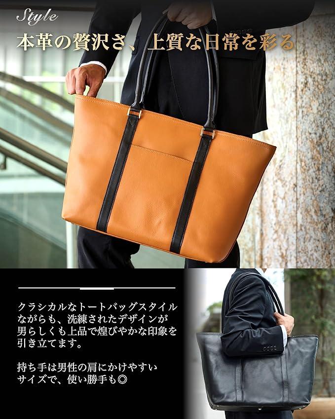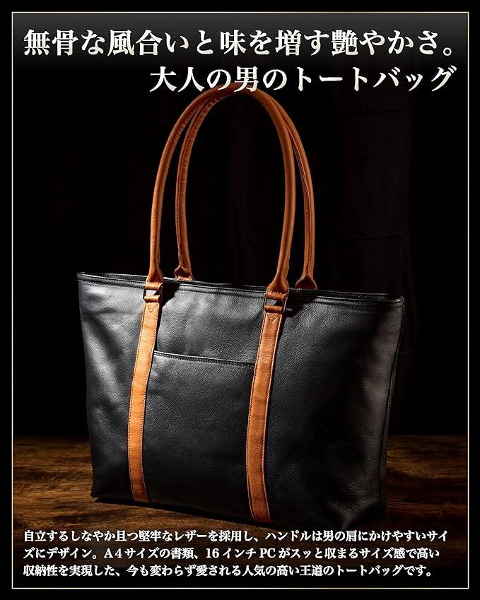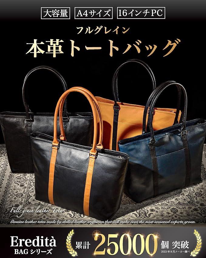 [エレディータ] トートバッグ メンズ ビジネスバッグ-本革 (黒×黒)