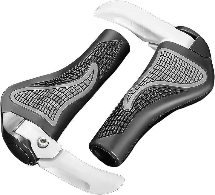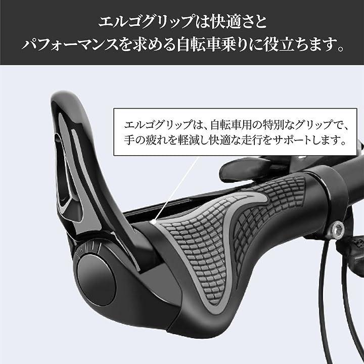 エルゴグリップ で手が疲れにくい: 自転車 ( クロスバイク マウンテンバイク ) に乗る際の人間工学に基づいた形状の グリップ は手の自然なカーブにフィットし、また滑りにくくグリップ時の負担を軽減します。
