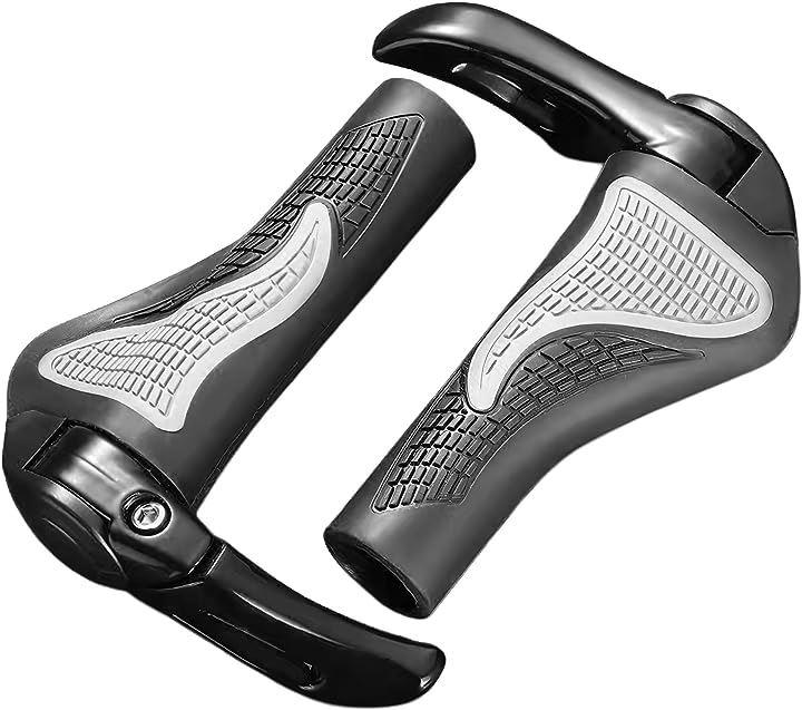 Ergonomic handlebar grips for bicycles, cross bikes, and mountain bikes. Made of horn rubber. Customizable parts.