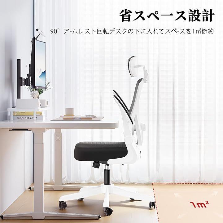 (5) 90°回転アームレスト+静音キャスター —— 省スペース&床を傷つけない アームレストは90°跳ね上げ式で、机の下にスッキリ収納可能。