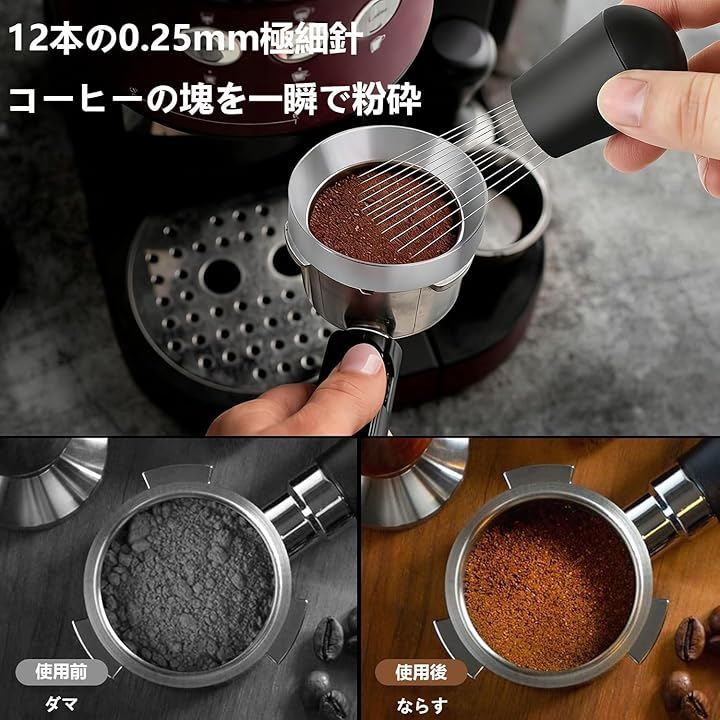 エスプレッソ用 WDT ツール:直径 0.25mm の極細ステンレス針で、粉のダマや偏りを解消。
