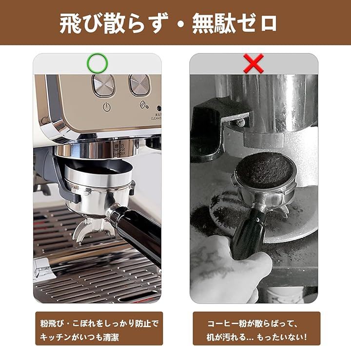 58mm デロンギ ポルタフィルターに対応:デロンギをはじめとする、58mm 規格のエスプレッソマシンに設計されています。