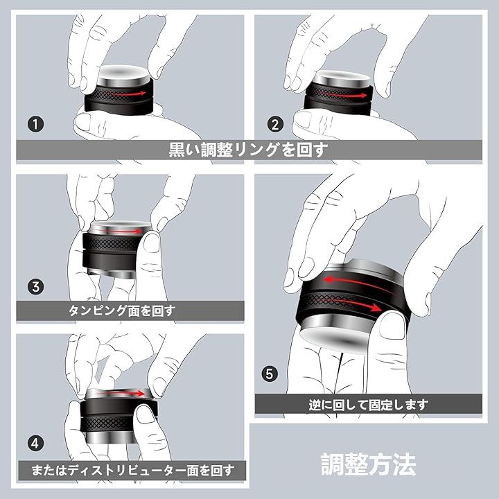 2-in-1 コーヒーディストリビューター&タンパー:304ステンレス製 2WAY ツールで、エスプレッソ作成の工程を効率化。