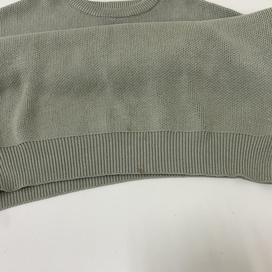 前側下部に汚れ、首回りと手首の裾に黒ずみがあり、全体的に使用感を感じられる商品になります。