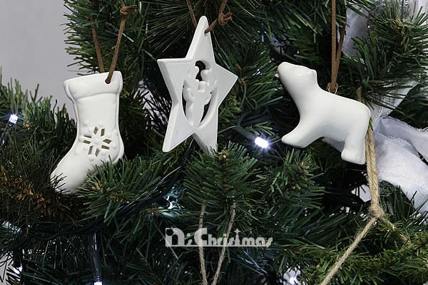 むかーしむかし、プラスチックも無かった時代、松かさや木のおもちゃ、布製品がツリーオーナメントの主流でした。次にブリキ製品が出てきても陶器の飾りは高価なものだったことでしょう。現在ではあまり見かけなくなった感のある陶器製。しかもこんな可愛らしいアイテムがこんなお手ごろで手に入るなんて(~o~)
