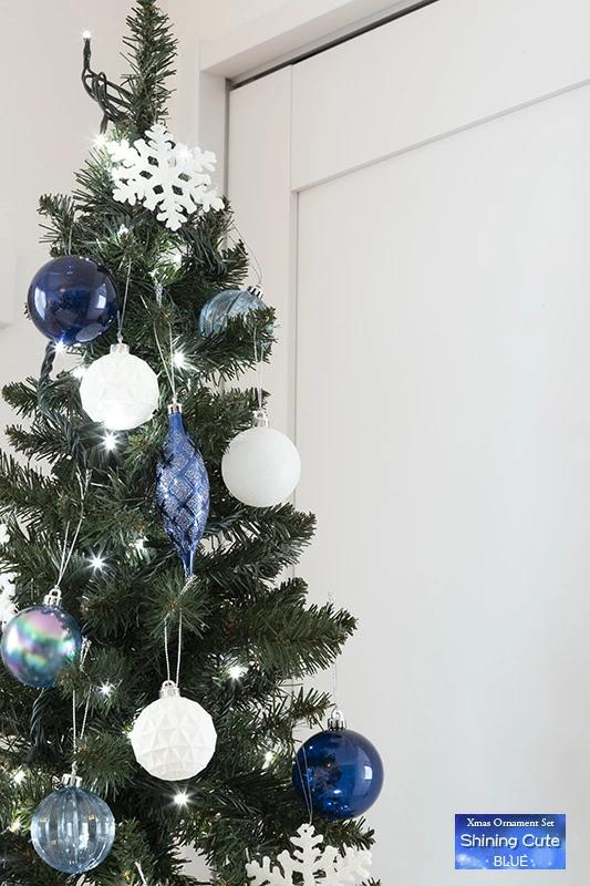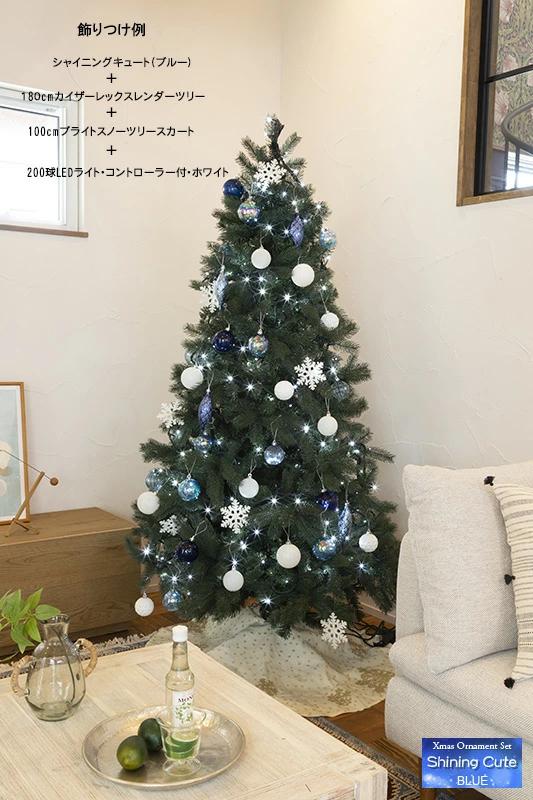スノーフレークやいろんな種類のボールをビギナーにも飾りやすいように同系色でまとめ、このセットでご満足いただけるようにプロが吟味してチョイスしています。迷ったらコレ! ですね。※この商品は、オーナメントセットで、ツリー・電球・ツリースカート等は含まれておりません。※運搬中に生じたスレ、へこみが若干ございますので何卒ご了承願います。
