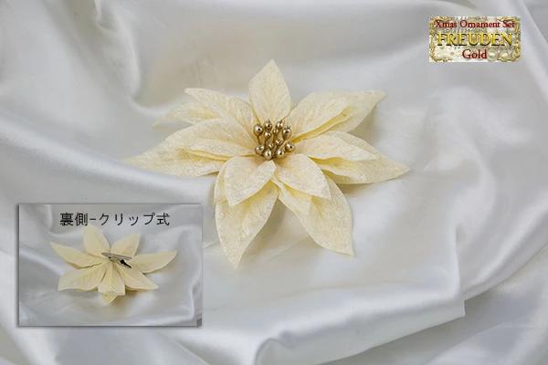 珍しいポインセチアクリップのオーナメントを中心にゴージャスな雰囲気の中に可愛らしさを表現したオーナメントセットです。フロイデンとは『喜び』のこと。見ていて楽しく嬉しくなるようなオーナメントセットなのでこう名付けました。私たちの暮らしが早く『喜び』に満ち溢れますように。