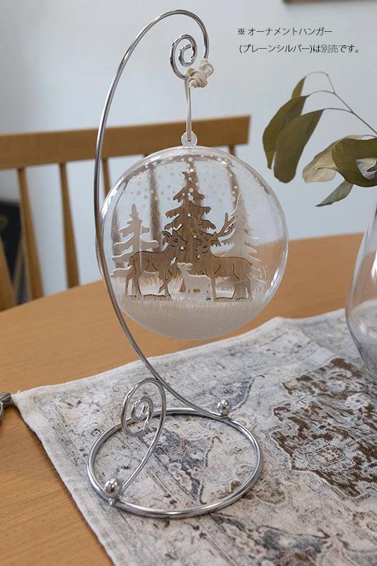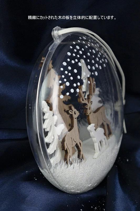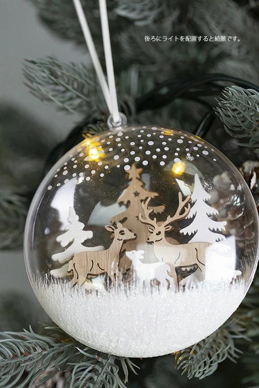精緻なデザインにカッティングされた木製ボードを透明で丸いパックに入れた 可愛らしいアイテムです。吊り下げひもを付けていますのでクリスマスツリーのオーナメントとしてはもちろん、壁にかけたりオーナメントハンガーを利用してインテリアとしてなどいろんなシーンでお使いいただけます。