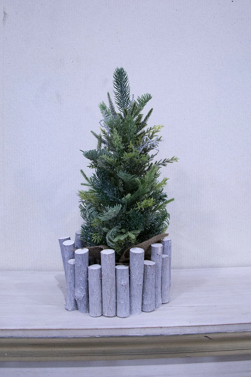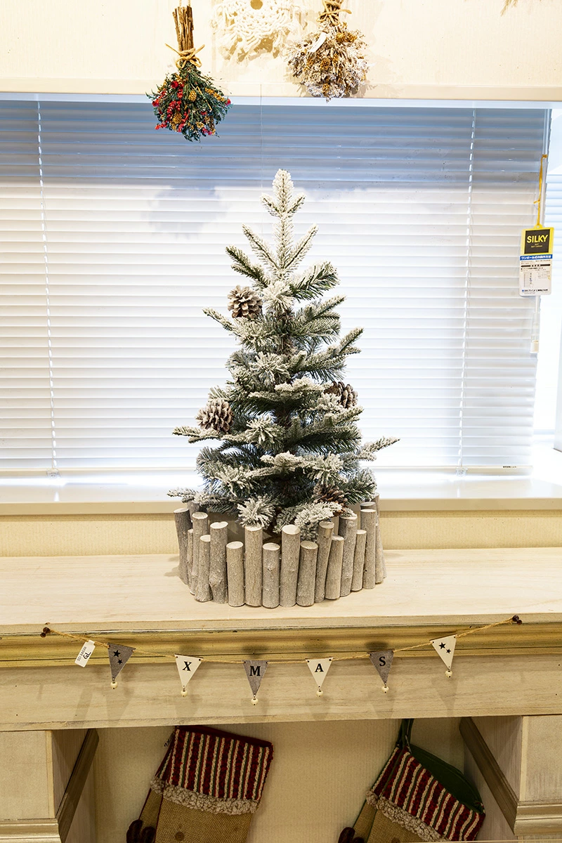 ミニウッドフェンス(フォグホワイト)☆小さなツリーの足元革命超売れっ子のウッドフェンスのミニサイズをご用意しました。小さめのクリスマスツリーの足元をオシャレにするアイテムがあまりなくて麻布で包んだ重しをベースにしたり、バケツの形にするとかでした。まあそれでもいいんですが、このウッドフェンスで囲ってあげると雰囲気がナチュラルだったり贅沢な感じなります。だいたい50cm~90cmくらいのツリーならよく合うと思います。