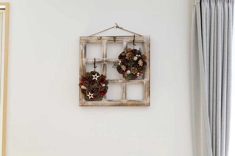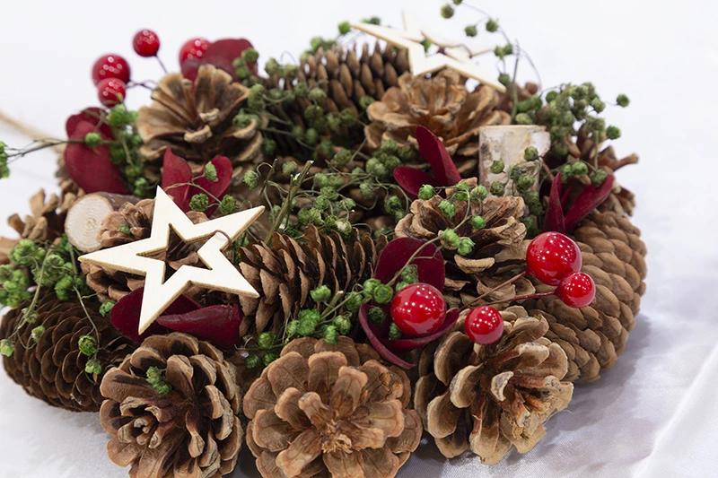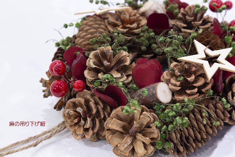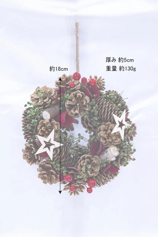 ネイチャーリース(ぎっしり松ぼっくり)☆自然の松かさをぎゅっと!松ぼっくりをいっぱい使った可愛いリースです。星型のクラフトがアクセントになっていて、小ぶりなのでいろんな場所に飾りやすいアイテムです。