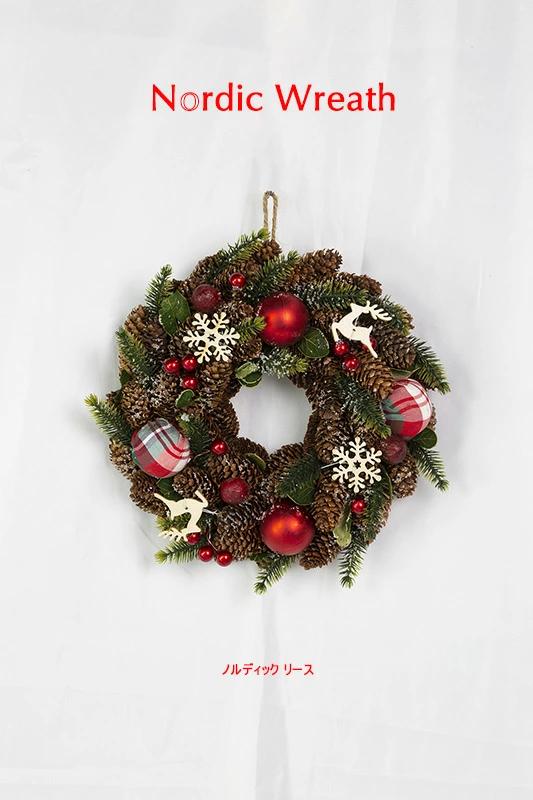 一般名称ノルディックリース原材料名 ポリエチレン・スチロール・自然素材ボックスサイズ直径:約25cm厚み:約6.6cm重量:約220g吊り下げ麻ひも付