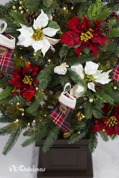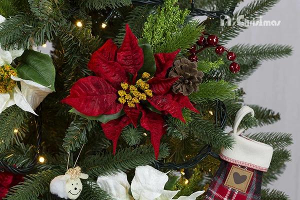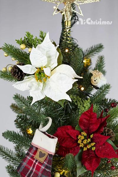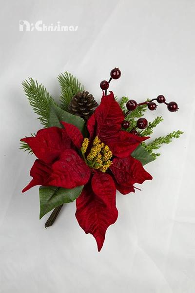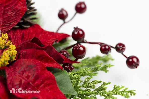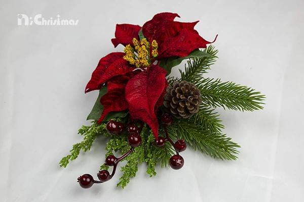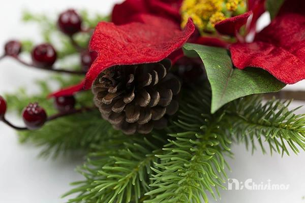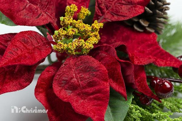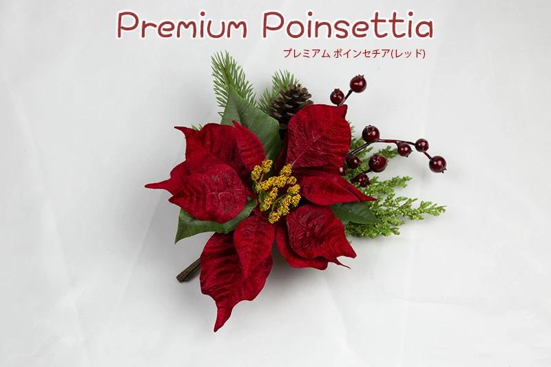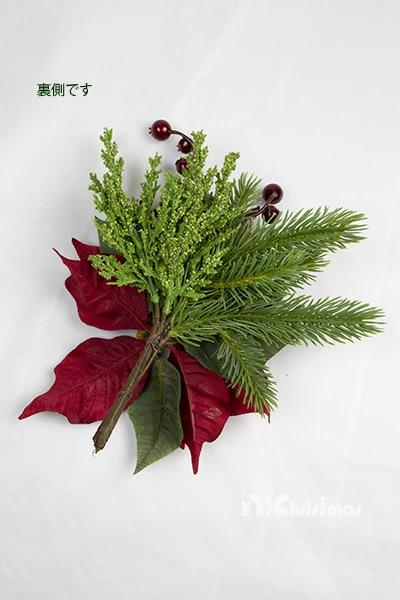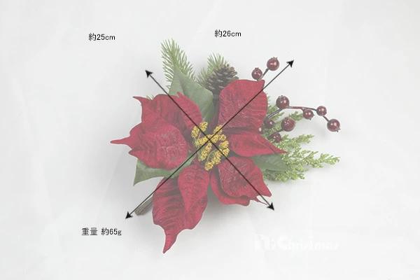 クリスマスシーズンに欠かせないポインセチアですが、さらにゴージャスにアレンジしました。しかもメイドインジャパンでありますっ。※オーナメントワイヤーがあると取付が簡単です。