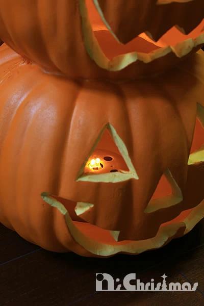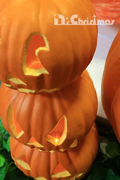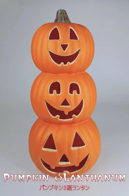 パンプキン3連ランタン46cmハロウィンディスプレイの定番!スイッチを入ると中のLEDが光ります(常灯)。店舗の入り口や住宅展示場など、お手軽にディスプレーしていただけます。(室内仕様)