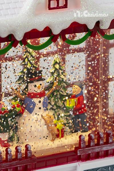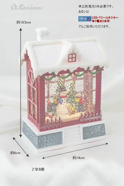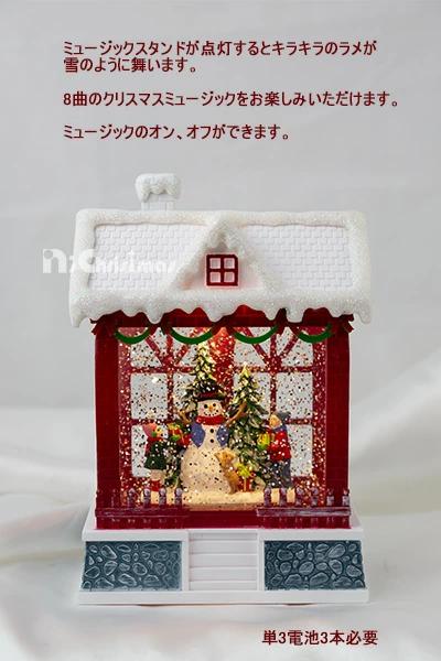 スイッチオンでキラキラのラメが舞い、クリスマスミュージックを奏でます。音楽もオン、オフできて全8曲でループします。