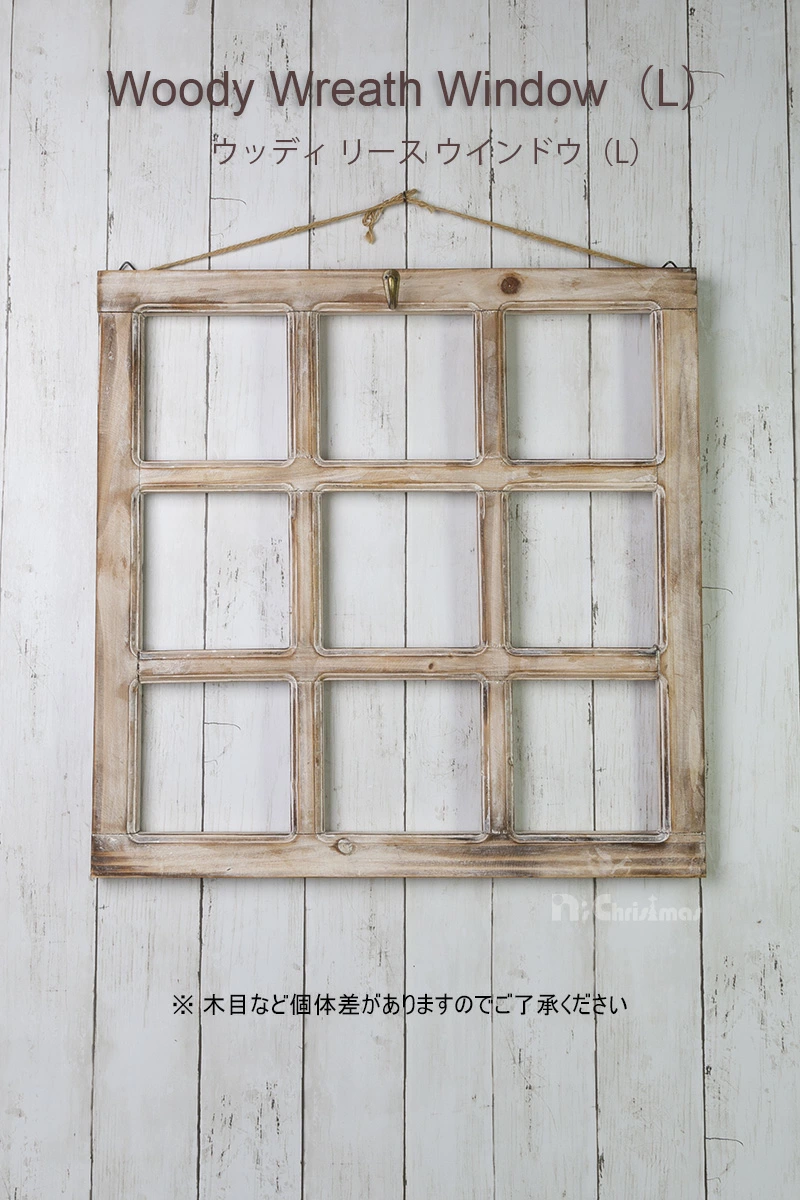 ウッディリースウィンドウ(L)☆壁飾りをもっと素敵に!珍しい窓枠の形をした壁掛けインテリアです。リースや小物をそのまま飾るよりも、このウッデイーリースウインドウを使った方が圧倒的に素敵に見え、特別感が出る不思議なグッズです。壁に飾るインテリアグッズの魅力を最大限に引き出す新しい方法です。ぜひ!※木目などある程度個体差がありますのでご了承願います。