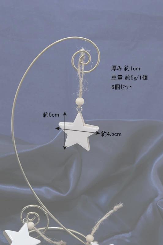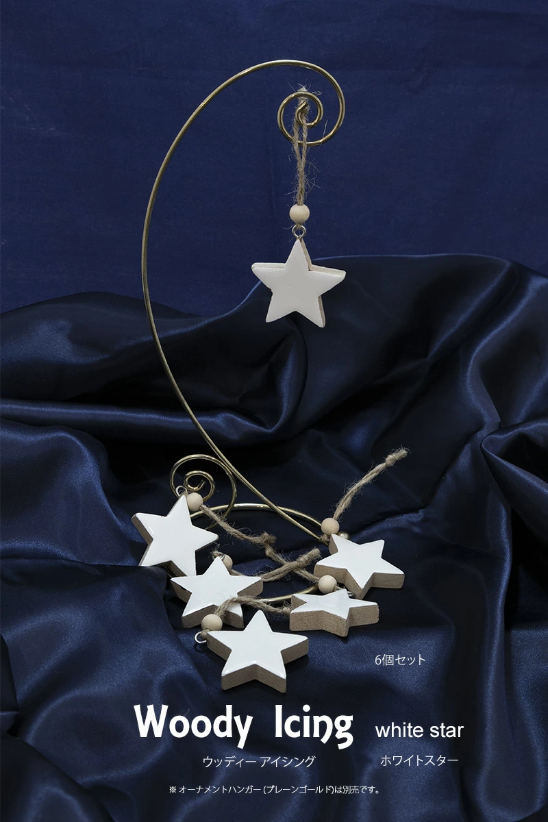 ウッディーアイシング(ホワイトスター)6個セット☆はやりの木製オーナメントアイシングされたお菓子のようなオーナメントです。かわいい系オーナメントとコラボさせるのはもちろん、シンプルなデザインなので大人っぽいオーナメントと合わせても大丈夫。ツルっとした表面がよりかわいさを引き立てます。