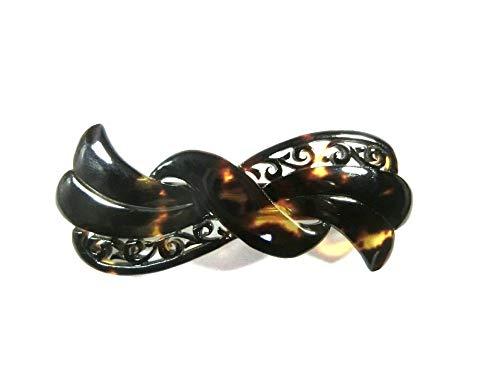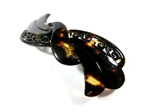 ■本べっ甲透かし彫り髪留めー09【本鼈甲保証書付き】 ★横7,7cmx2,8cm ◎箱にお入れして包装してお届け致します※べっ甲は天然のものでございますので画像とは少し違う場合がございますのでご了承くださいませ。