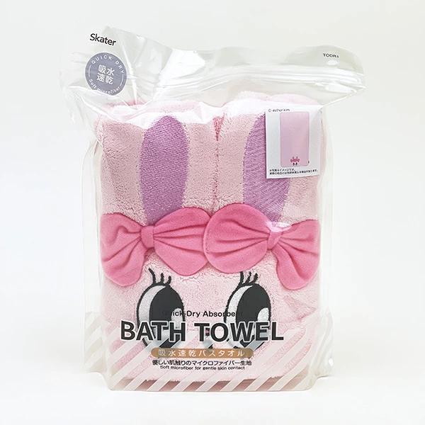エスターバニーの吸水速乾バスタオルです。マイクロファイバー生地のバスタオル!優しい肌触りのマイクロファイバー生地が水分をしっかり吸水♪水分をすばやく吸収して、乾くのも速いなんて嬉しい☆エスターバニーのお顔付きで可愛い♪お風呂上がりや水遊びの際など様々な場面で大活躍すること間違いなしです☆彡