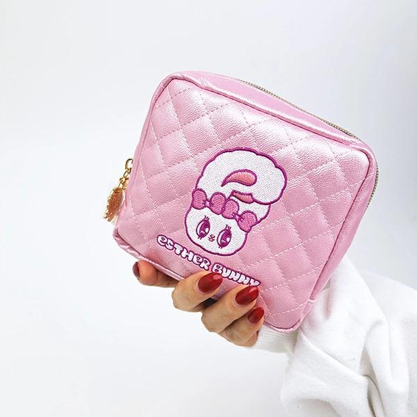 韓国系アメリカ人であるEsther Kim氏がデザインした、POPでガーリーなテイストのウサギのキャラクターのエスターバニーのキルティングポーチです。光沢感のある生地で高級感もあってオシャレ♪ゴールドのバラチャームがポイントです☆メイク用品や小物を入れるのにぴったりなサイズ感が◎内ポケット付きなので使い勝手がよく普段使いにgoodです☆彡