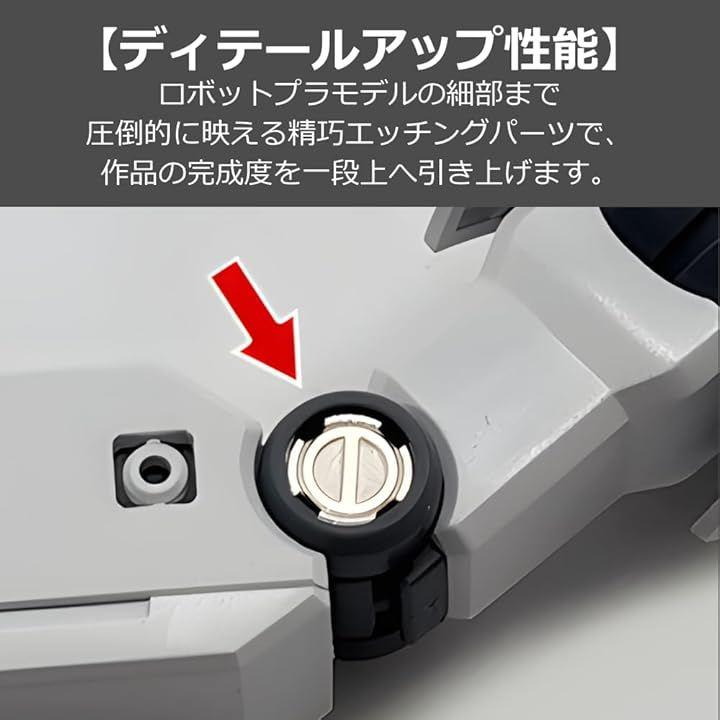 「ディテールアップ性能」ロボットプラモデルの細部まで映える精巧エッチングパーツで、作品の完成度を一段上へ引き上げます。