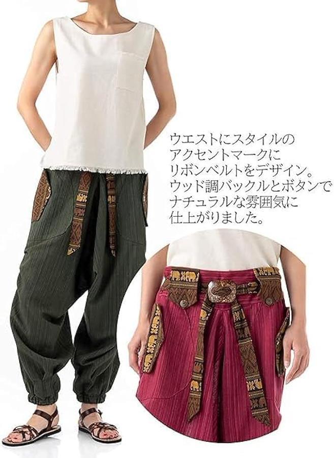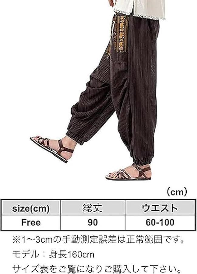 「サイズ」Free:裾丈90 ウエスト60-100(cm)*モデル:身長160cm * 染物素材の特性から色落ちします。