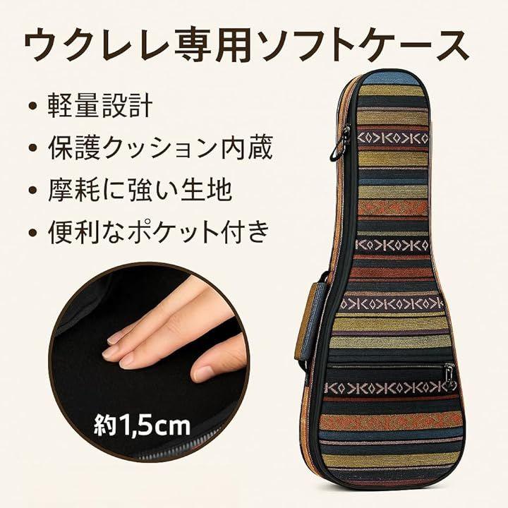 総合的に、本製品は持ち運びやすさ、耐久性、収納力、デザイン性、そしてサイズ展開の豊富さを兼ね備えたウクレレ専用ソフトケースです。