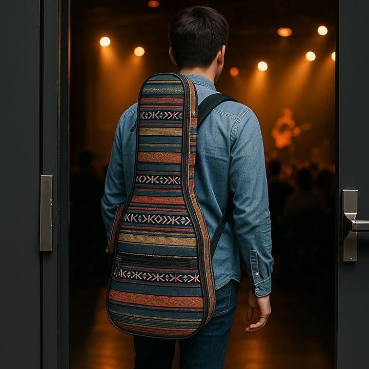 Ethnic-style ukulele case, adjustable soft bag with protective cushioning, waterproof, lightweight design