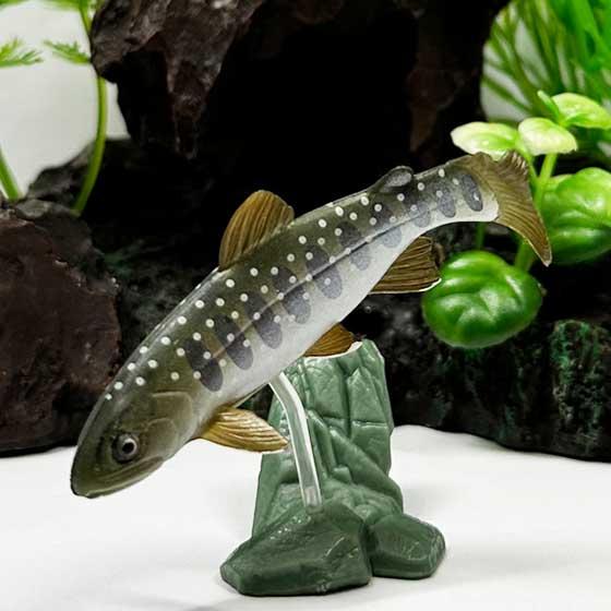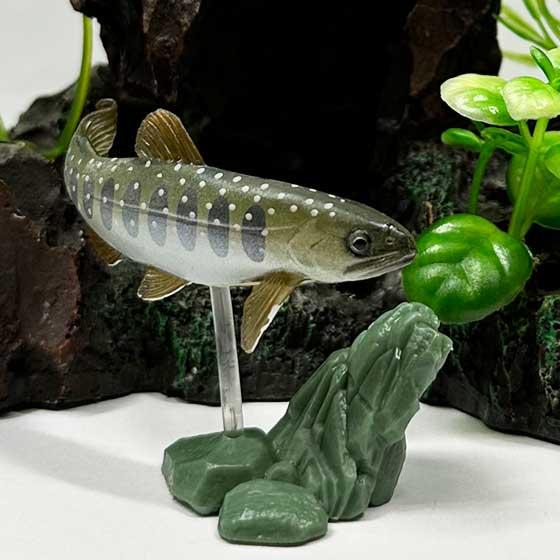 ■発売日:2006.3■メーカー:ユージン■シリーズ:原色図鑑シリーズ■商品名:原色淡水魚図鑑I(改訂版)■セット内容:ニッコウイワナ(単色台座)■販売価格:550円■サイズ:約60mm■素材:PVC■カプセルトイ■備考カプセル無しミニブック1枚付き