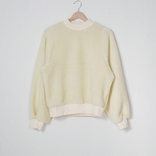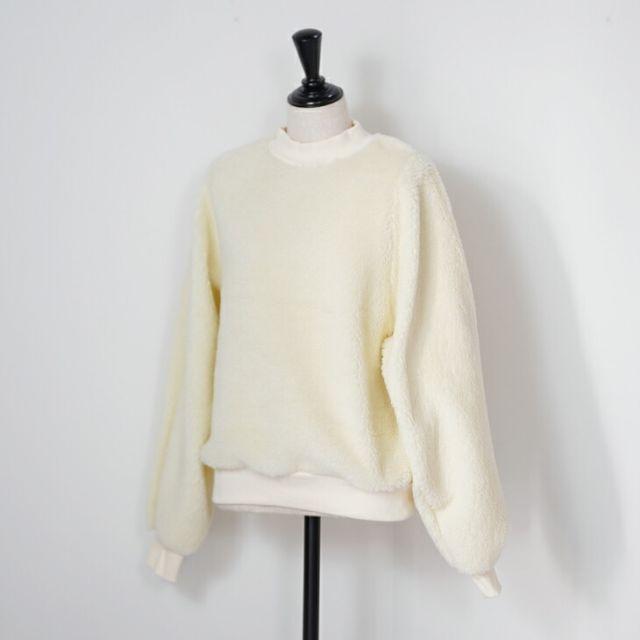 冬らしいボアのトップス。