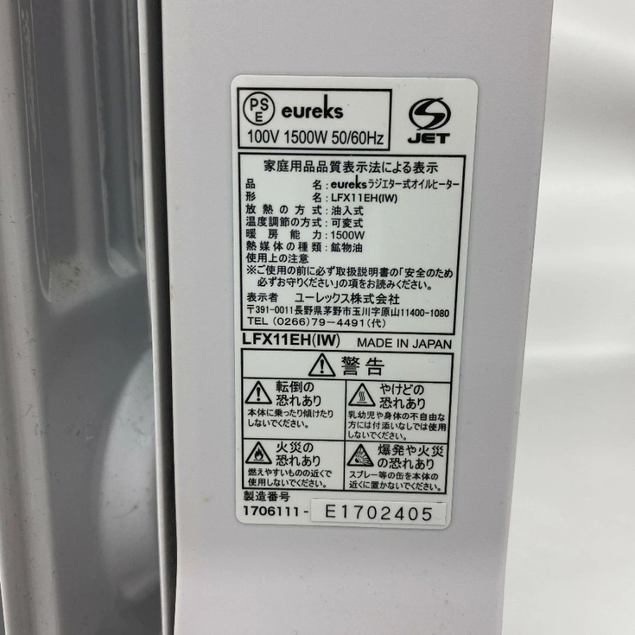 | 商品名 | ユーレックス eureks オイルヒーター LFX11EH TB グレー |