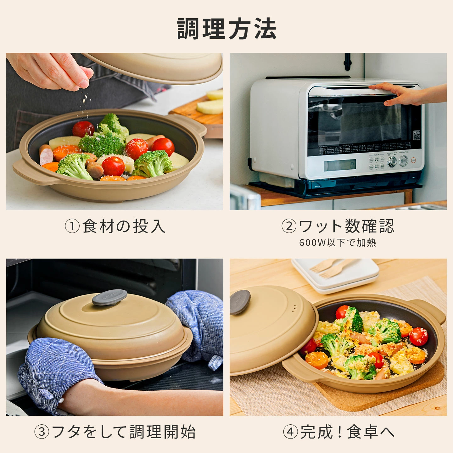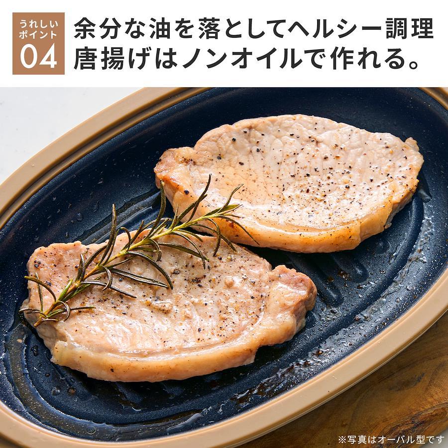 電子レンジに入れるだけで、まるでフライパンで焼いたような香ばしい仕上がりに。唐揚げもノンオイルで作れるから、ヘルシー派にもぴったり。そのまま器として食卓に出せるデザインで、盛り付けの手間もなし。汚れ落ちも良く、後片づけまでスマートにこなせます。食洗機も使用可能!