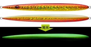 二枚潮などの潮が悪い状況でもスピーディに底取りができ、そして狙った動きを演出して誘うことができる圧倒的な操作性にこだわり、「上げ(ジャーク)」「下げ(フォール)」双方向に水抜けの良いノーズ&テール形状、かつ魚影が薄い状況でも視覚効果による高い集魚力で広範囲から魚を引き寄せてくれる扁平ロングシルエットを条件にデザイン。つまり「潮が悪い」「魚影が薄い」……そんな渋い状況でも釣果を絞り出せる切り札、それがサトウジグのコンセプトなのだ。細部の形状の詰めは船上で行い、佐藤自ら手削りで性能を理想レベルまで磨き上げた原型を製品に。「自分の中では最高の出来。」と佐藤。浅海・中深海の様々な魚種の攻略において、更なる釣果を叩き出すポテンシャルを持つ、凄いジグが完成した。