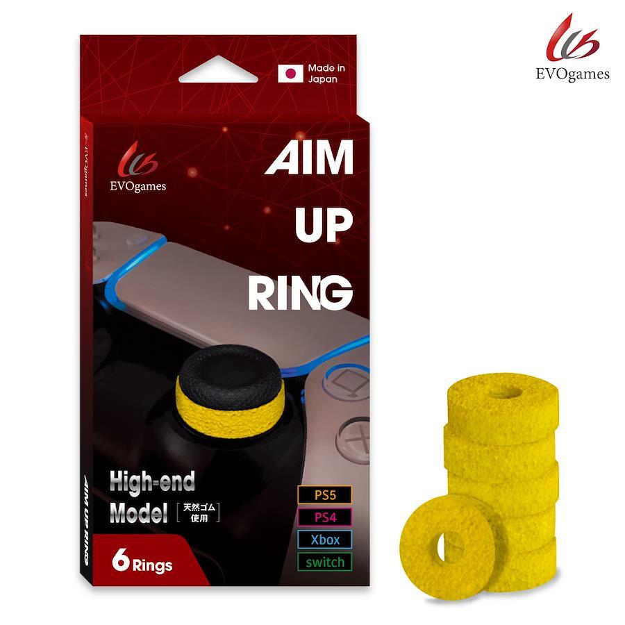 EVOgames Aim Up Ring, Made in Japan, Natural Rubber, FPS, Improves Precise Control, For FPS, For PS5/PS4/Switch/Xbox/PC Controllers, High-End Model, Set of 6