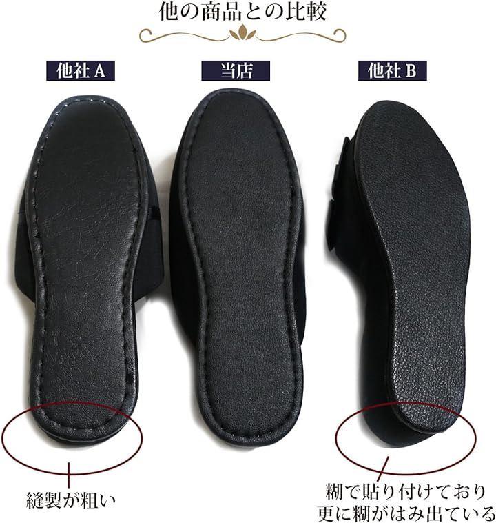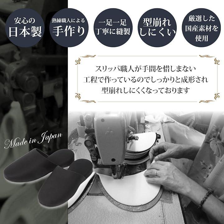 熟練のスリッパ職人が一足一足丁寧に手作りをしておりますのでしっかりと成形され型崩れしにくくなっております。