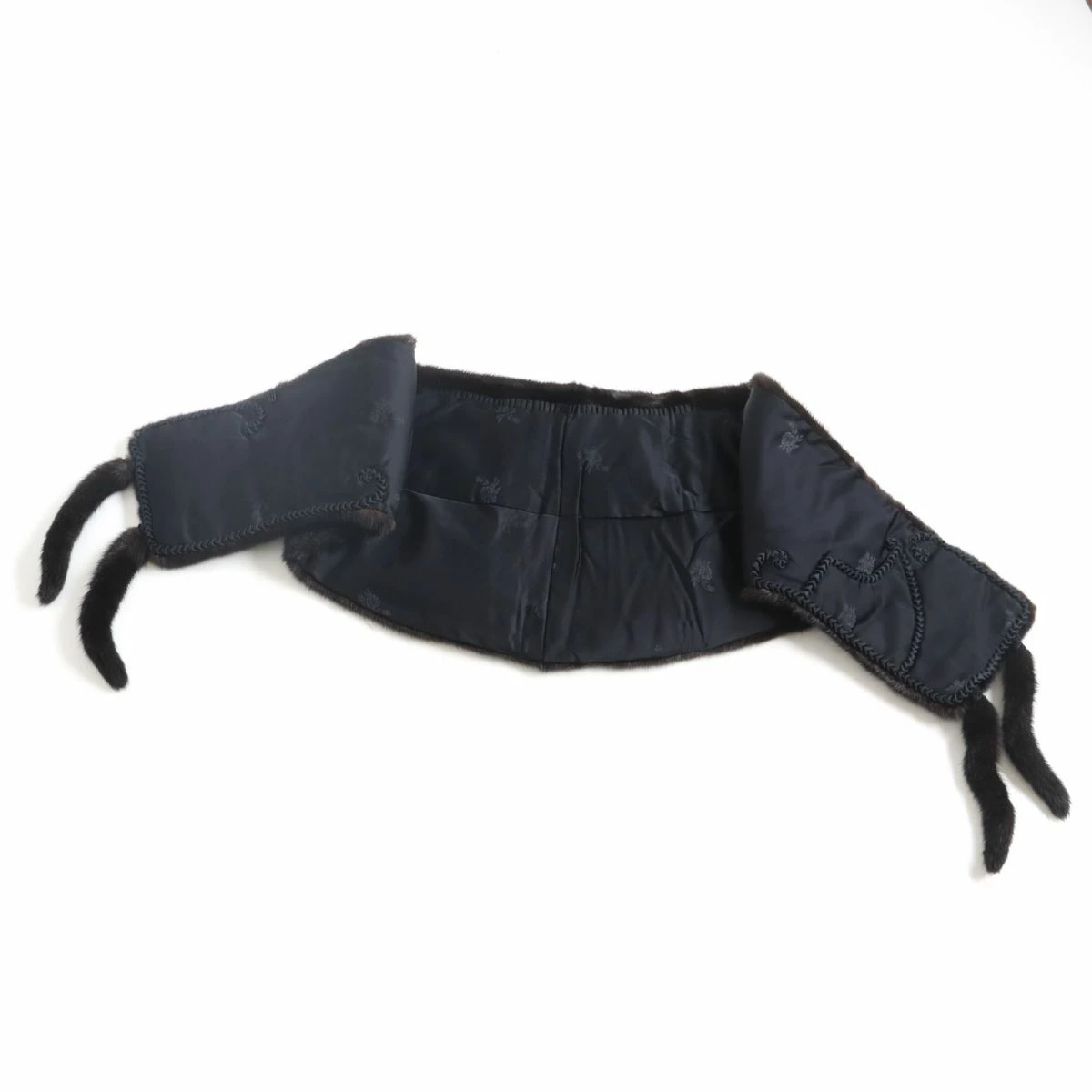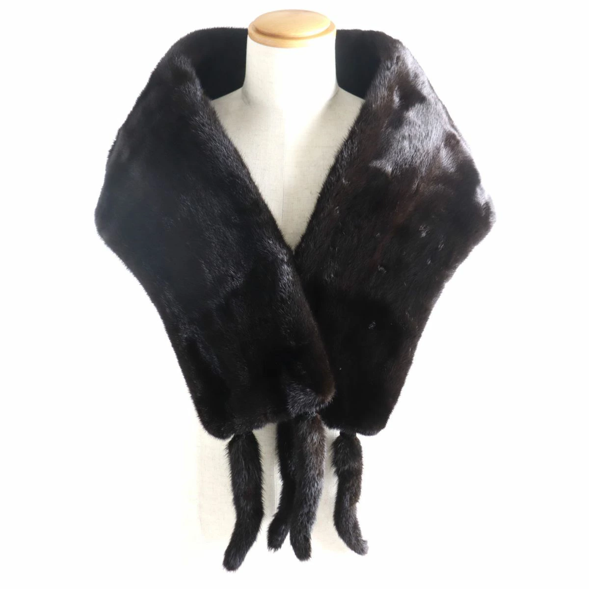 Excellent condition ▲MINK fur shawl/stole with tassels and floral embroidered lining. Dark brown. Shiny and soft fur.◎ [Pre-owned]