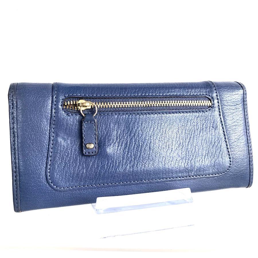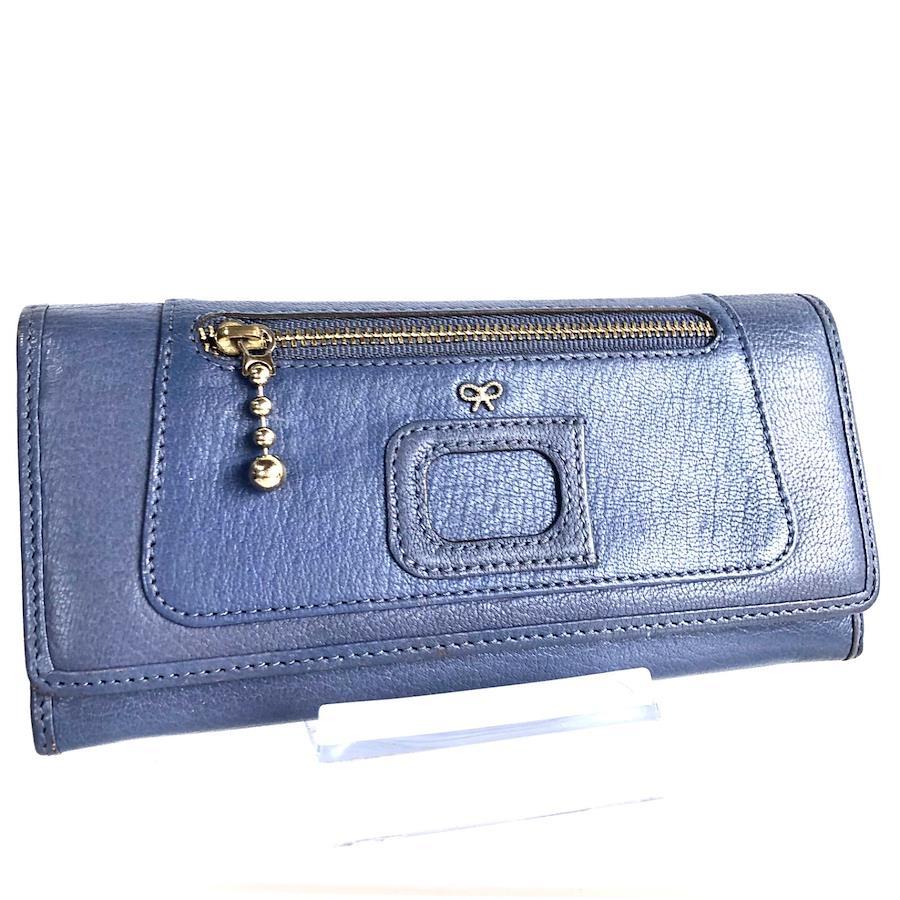 ■商品概要Anya Hindmarch アニヤハインドマーチ長財布リボン金具レザー 本革ブルーゴールド金具Wホックタグありレディース