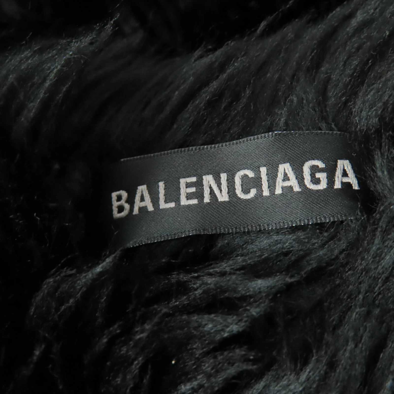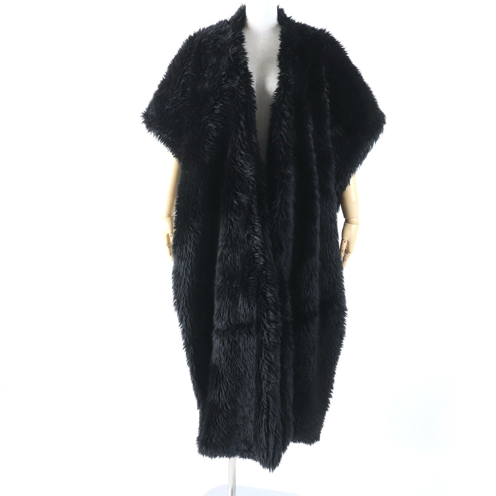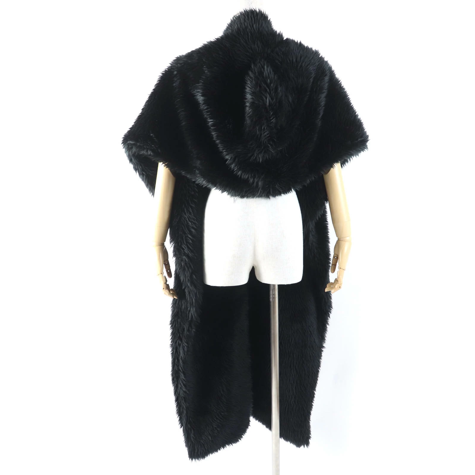 Excellent condition BALENCIAGA 719232 large faux fur shawl/stole with logo tag and hood, black, 156 x 48cm, made in Italy, authentic, women's [pre-owned]