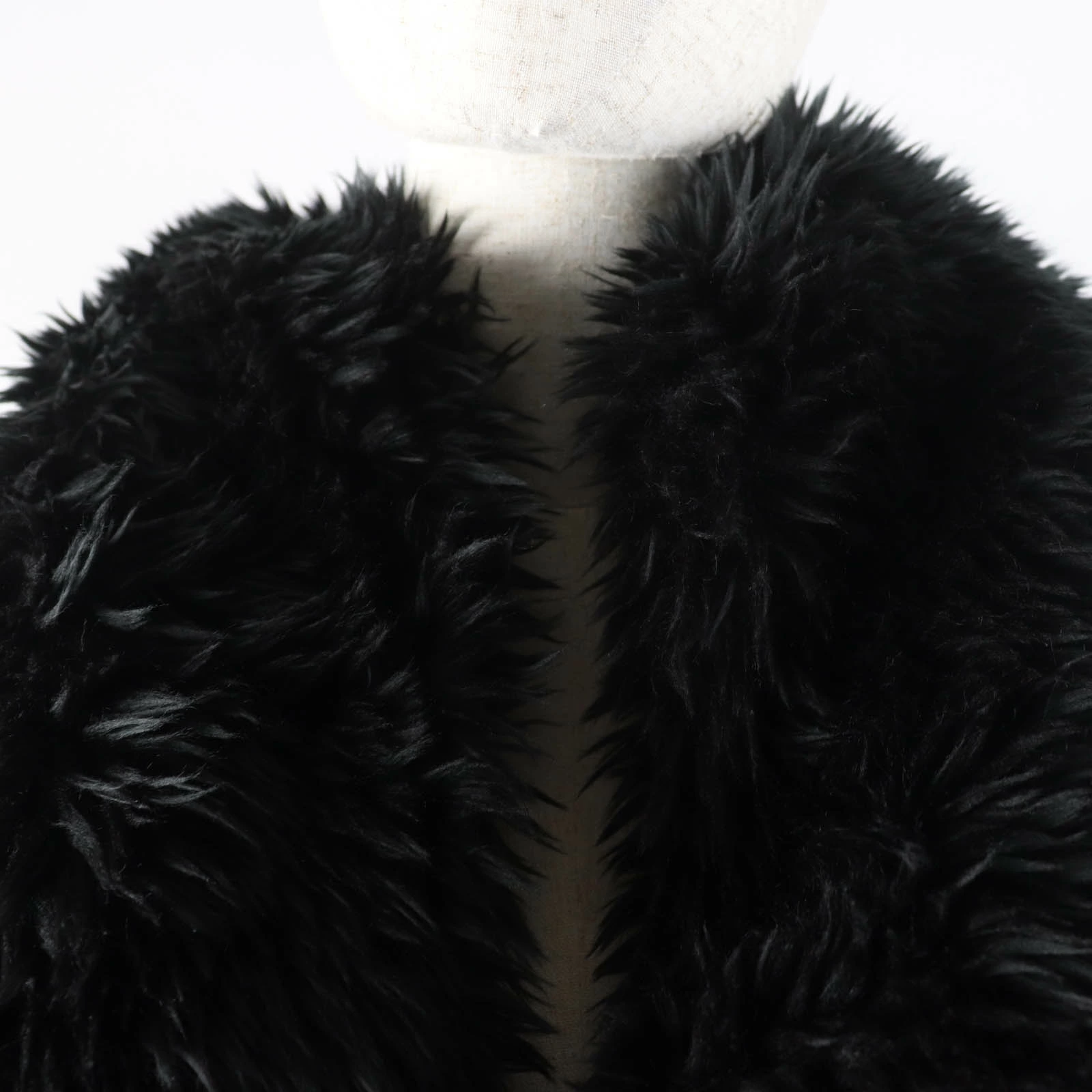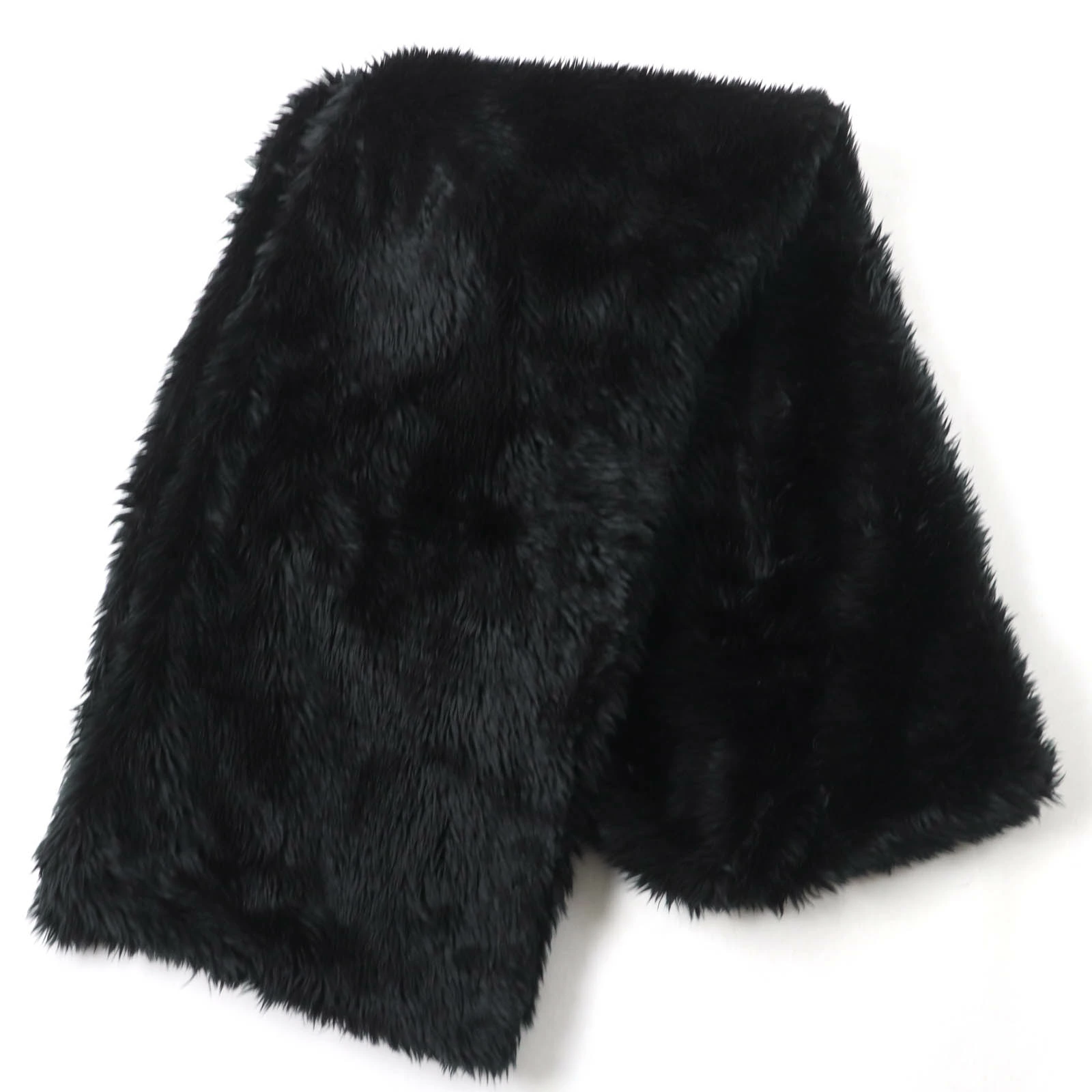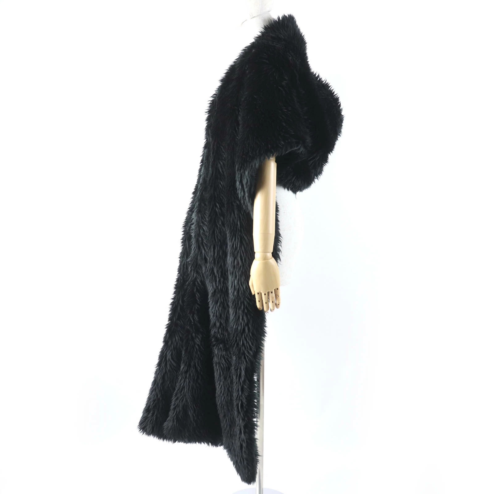 Excellent condition BALENCIAGA 719232 large faux fur shawl/stole with logo tag and hood, black, 156 x 48cm, made in Italy, authentic, women's [pre-owned]