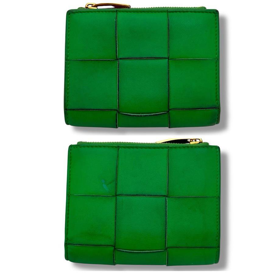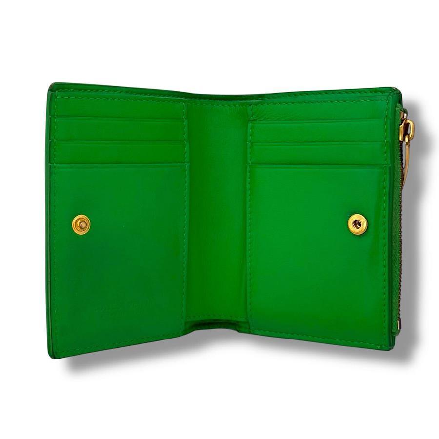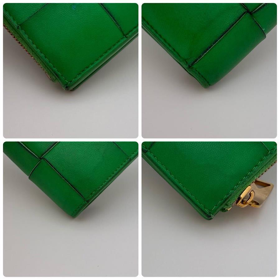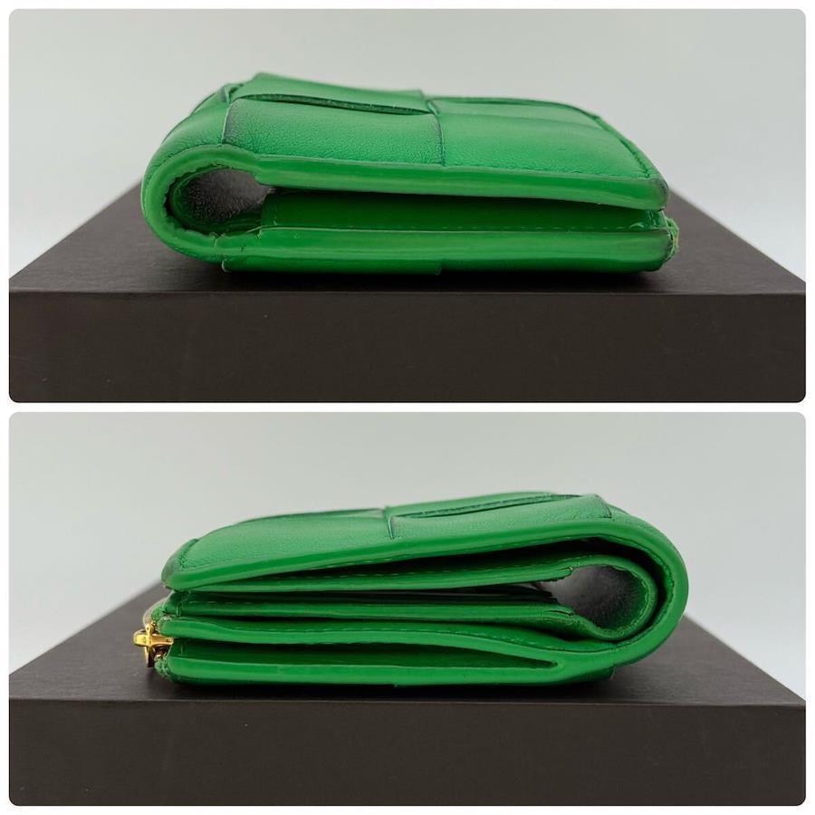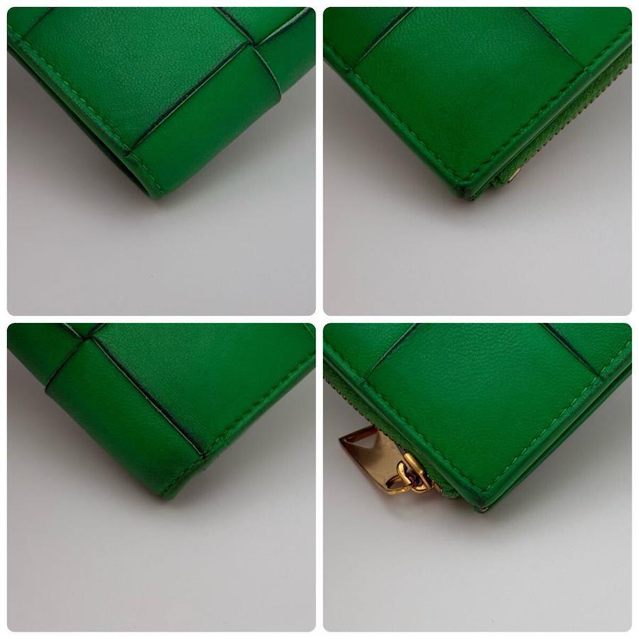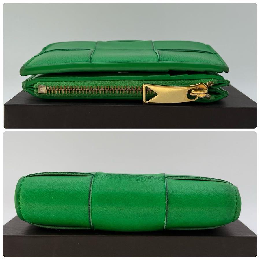 高級感あふれる BOTTEGA VENETA(ボッテガヴェネタ)の上位モデルに採用され、かつ代名詞とも言える「マキシイントレチャート(編み込み)」が美しく施された、二つ折り財布です。