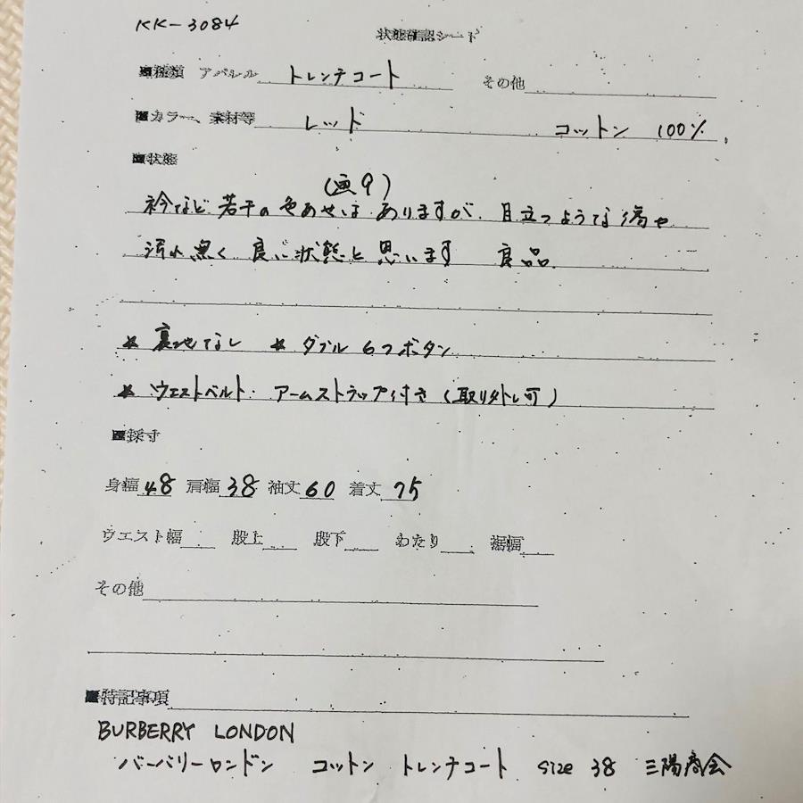 ■商品概要BURBERRY LONDON バーバリーロンドンダブルトレンチコート ミドルベルト付きコットン100%size38(サイズM)三陽商会スプリングコート 春秋レッドロゴ金属ボタンタグありレディースラグジュアリー ハイブランド 高級