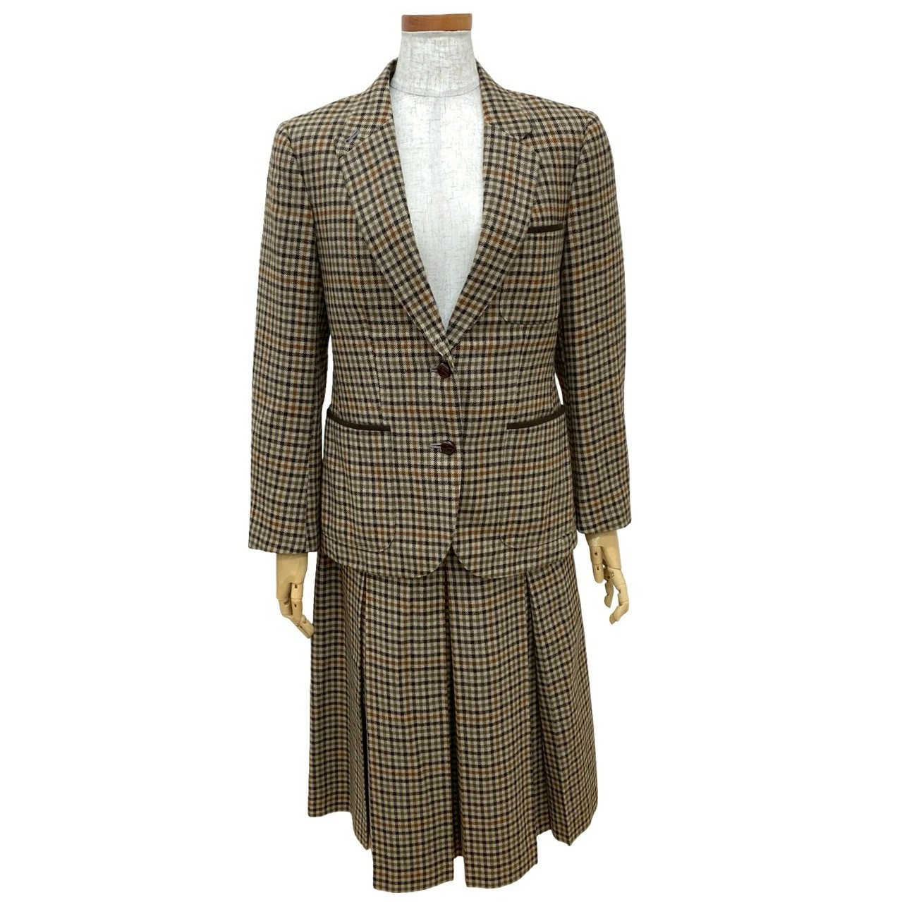 Excellent condition Burberrys vintage houndstooth checked wool jacket and skirt set in brown (product number 95813) [pre-owned]