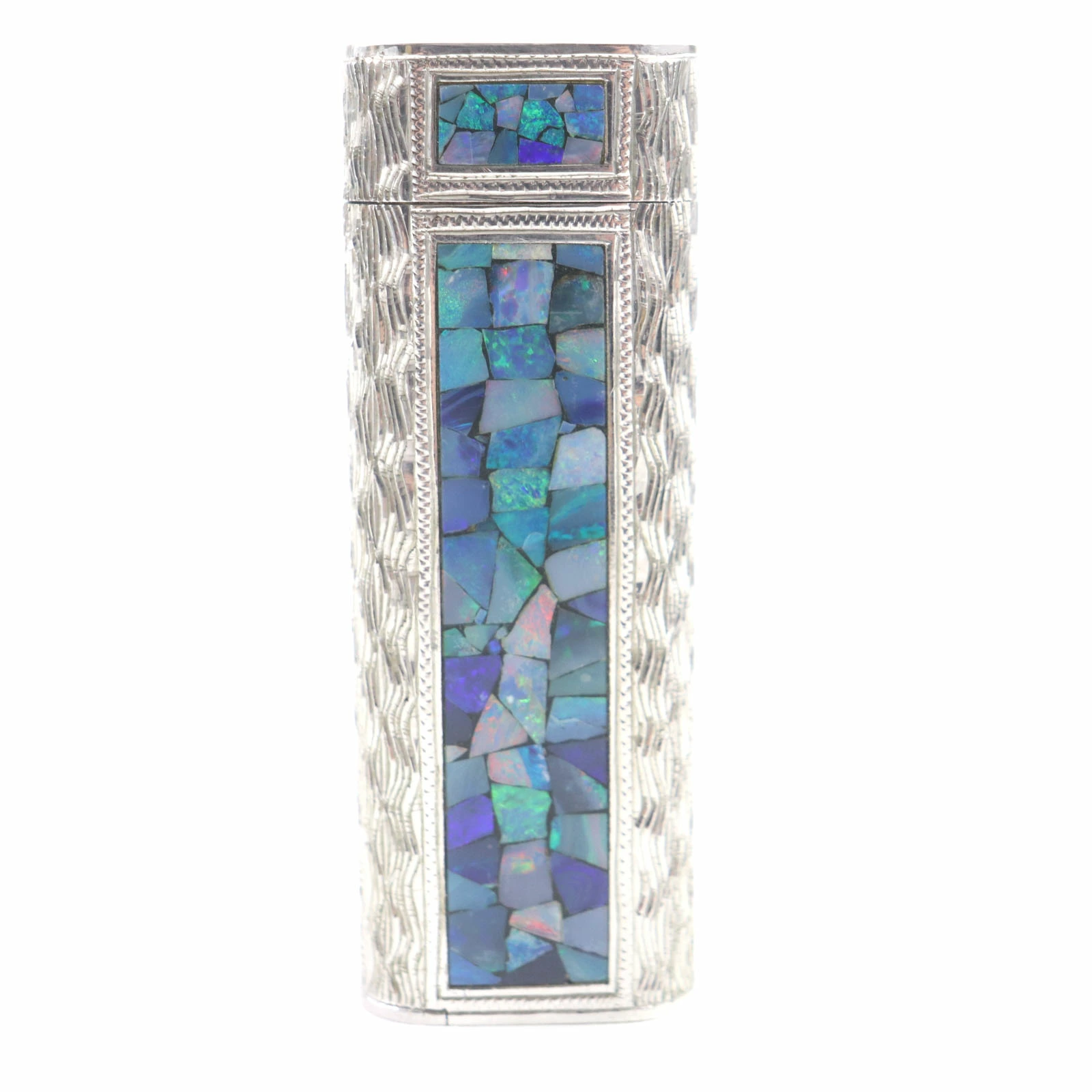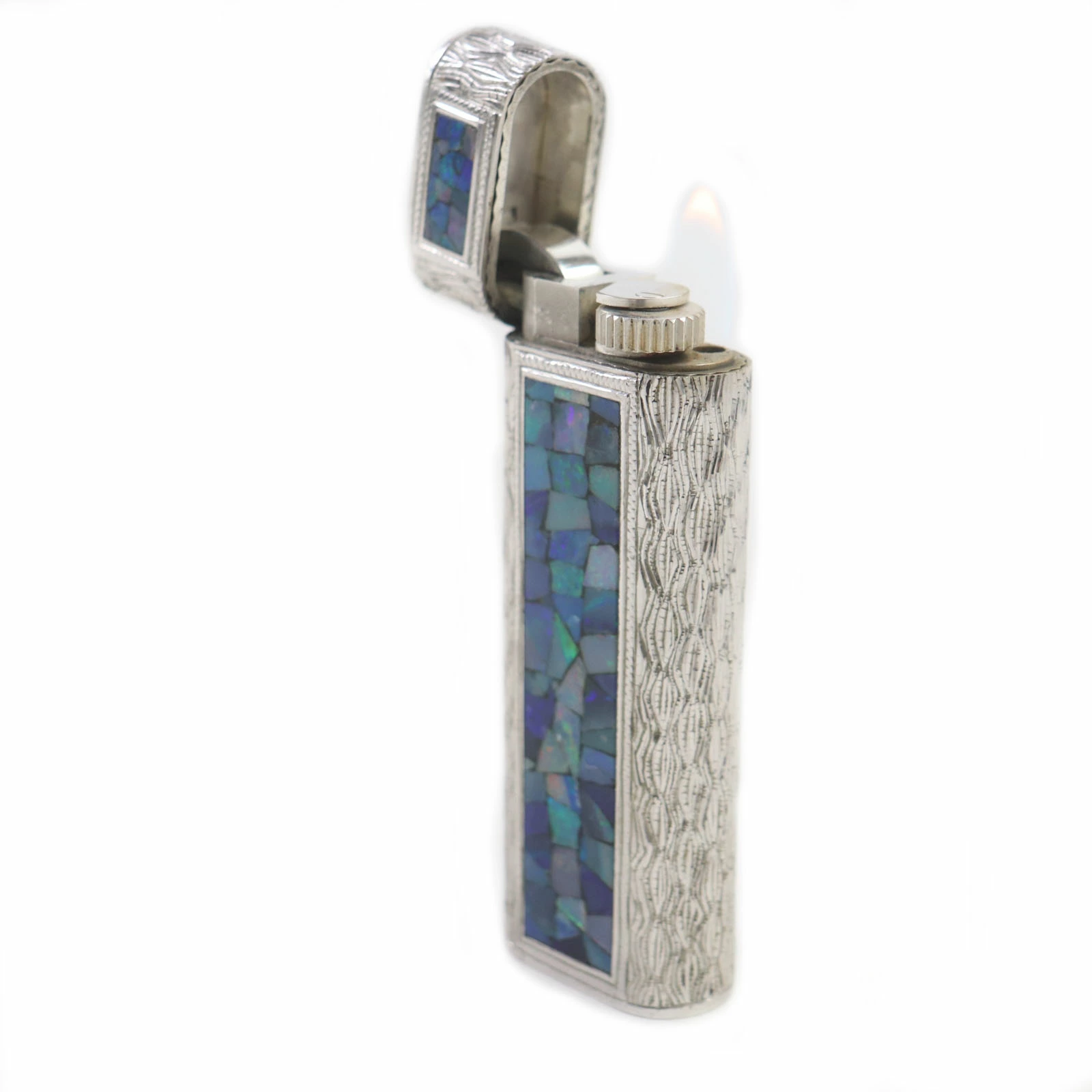 Excellent condition: Cartier Oval Opal Mosaic Outer Jacket Roller Gas Lighter, Silver and Blue, Men's, Ignition confirmed [Pre-owned]