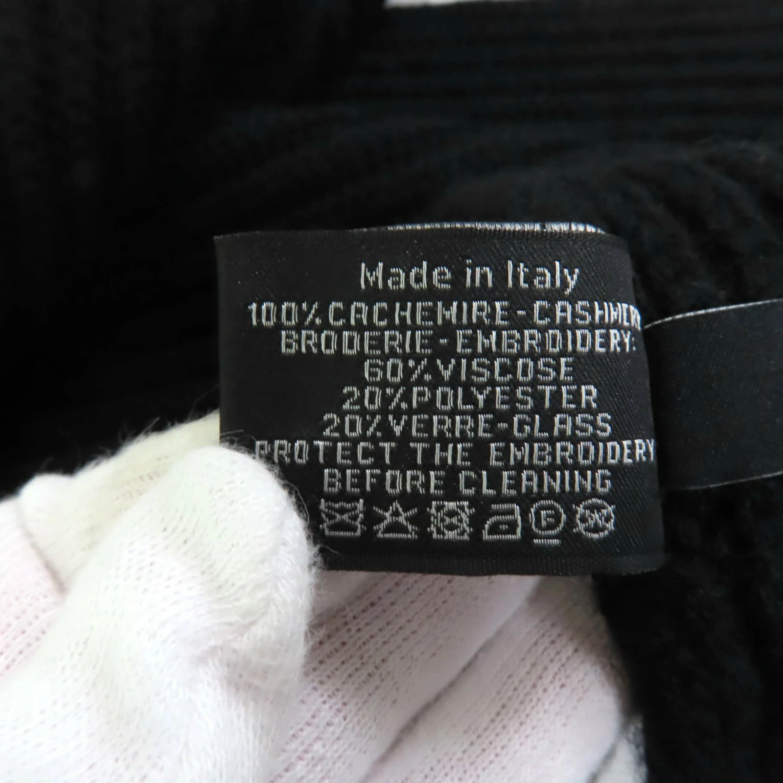 | 素材 (material) | 本体:カシミヤ100% 一部:ビスコース60% :ポリエステル20% :ガラスビーズ20% | ||||||||||||||||