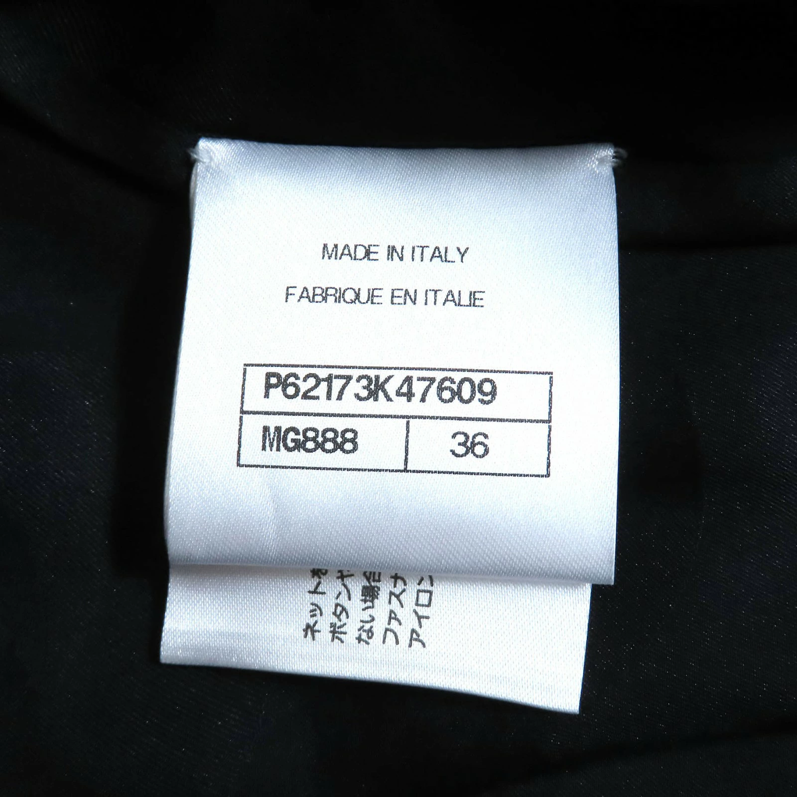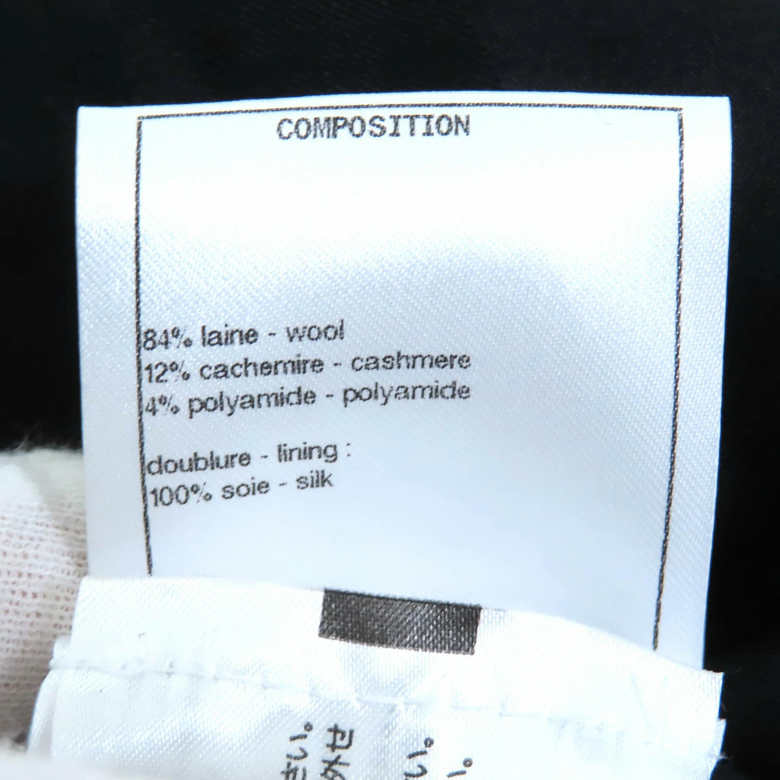 | 素材 (material) | 表地:ウール84% :カシミヤ12% :ポリアミド4% 裏地:シルク100% | ||||||||||||||||