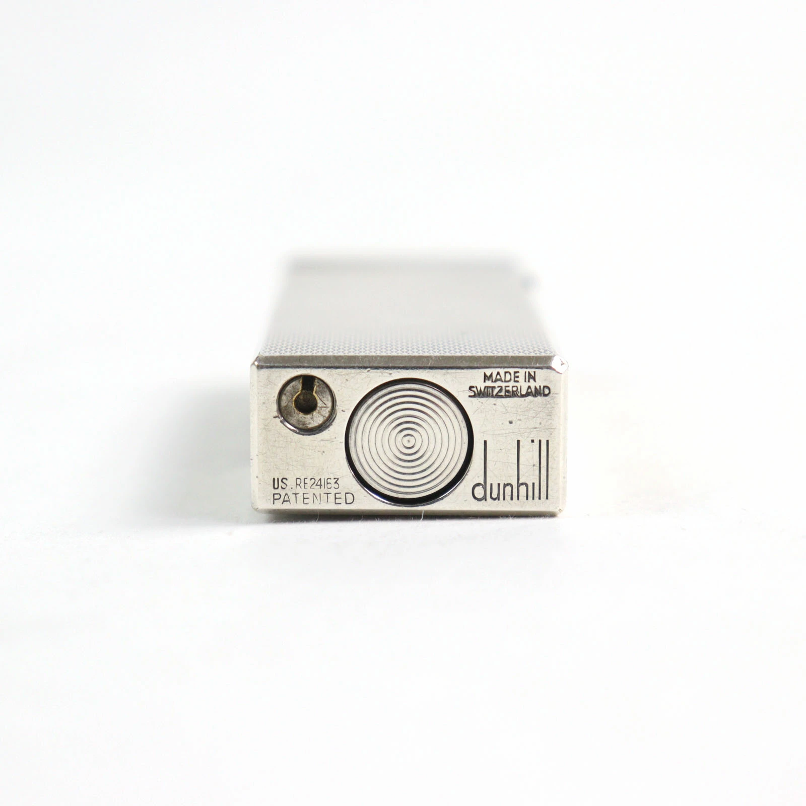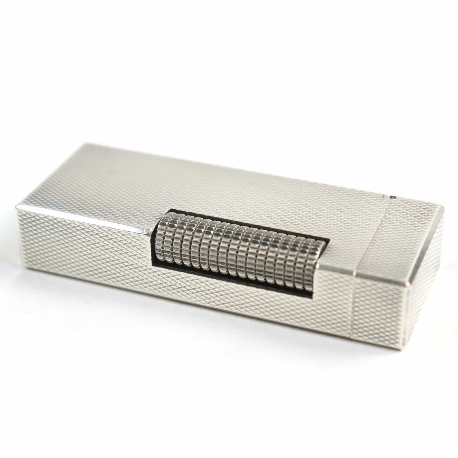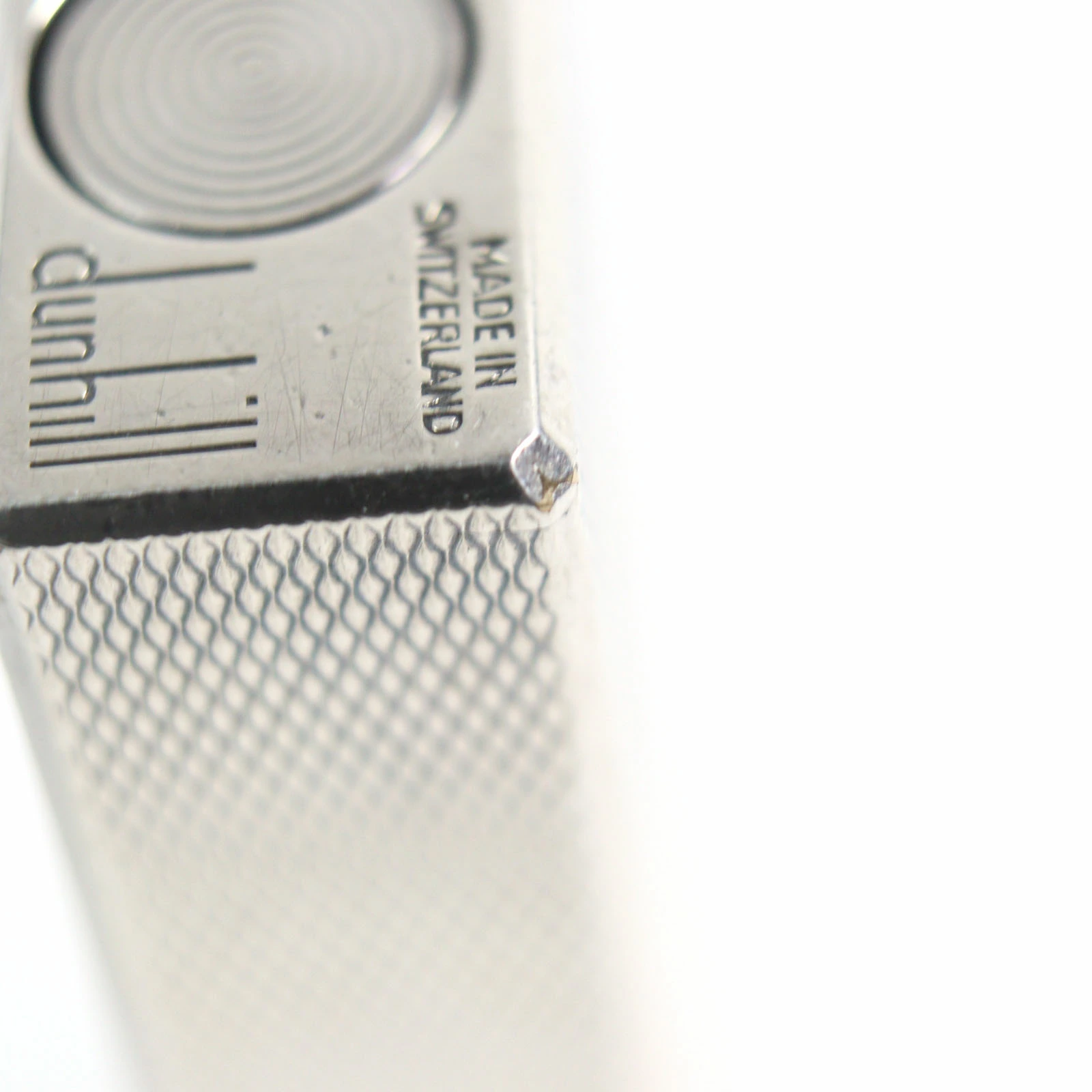Excellent condition Dunhill all-over print square roller smoking accessory gas lighter, silver, Swiss made, ignition confirmed [pre-owned]