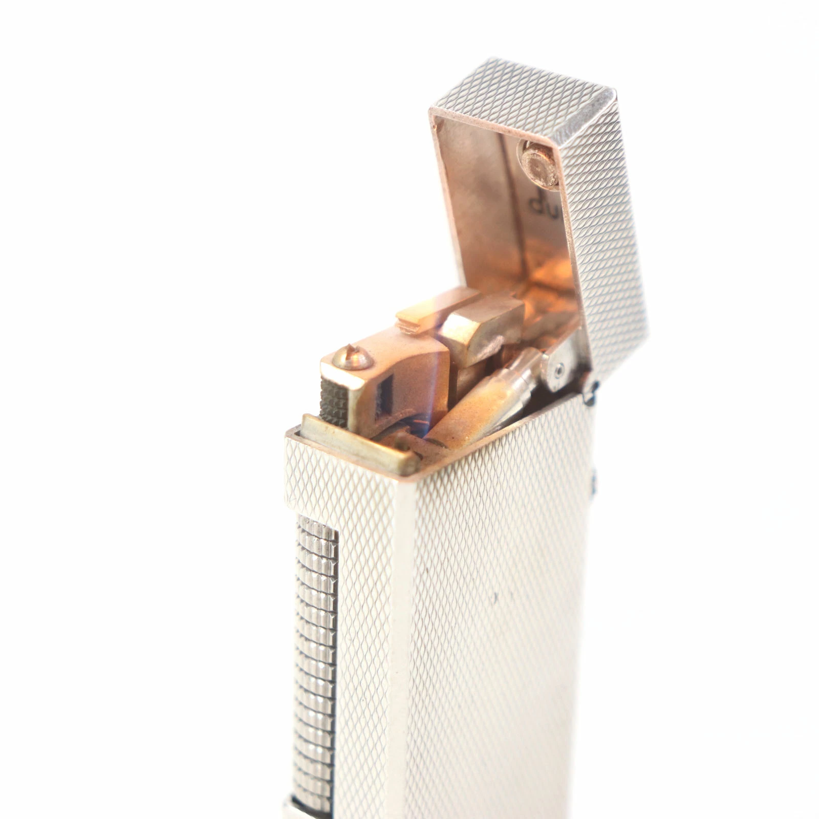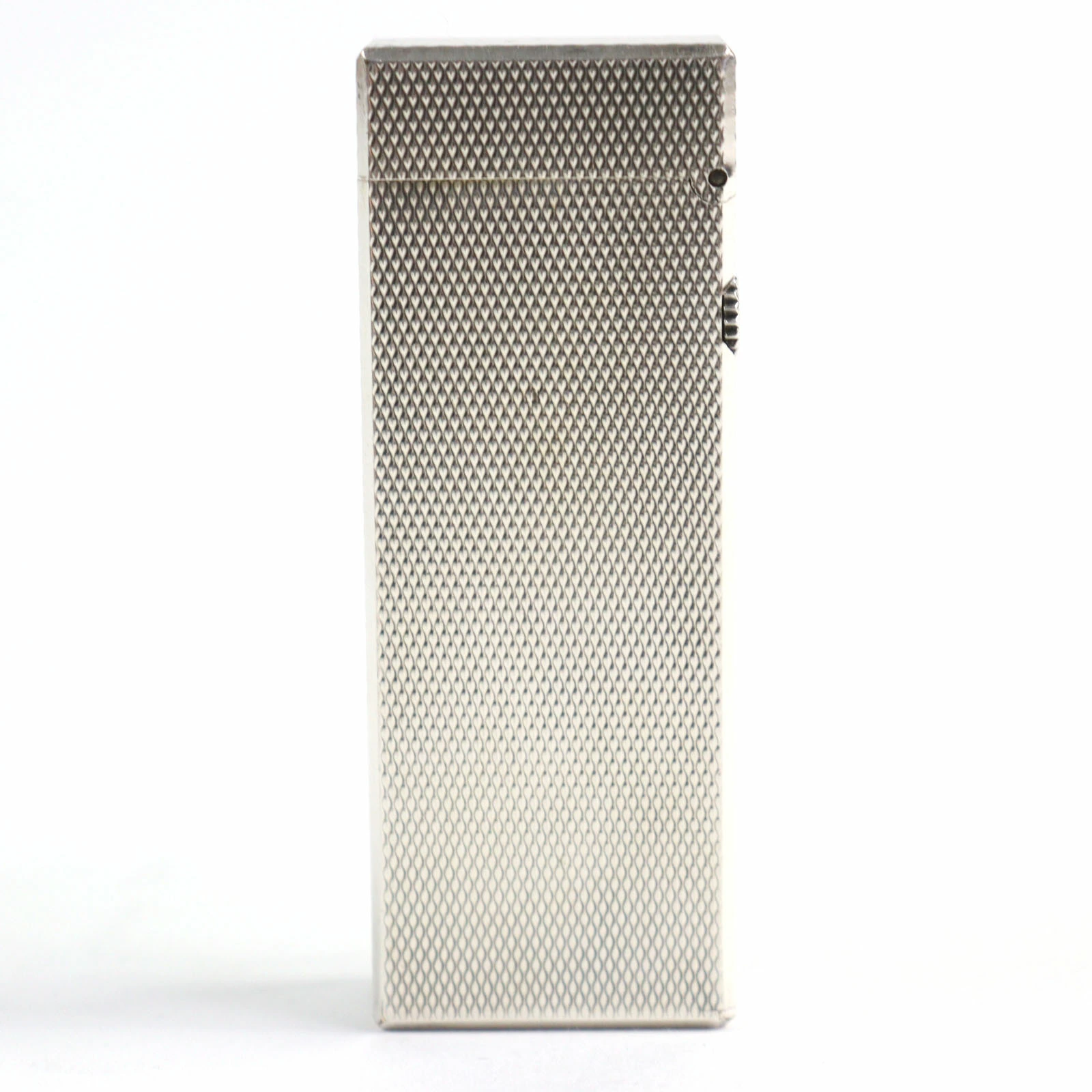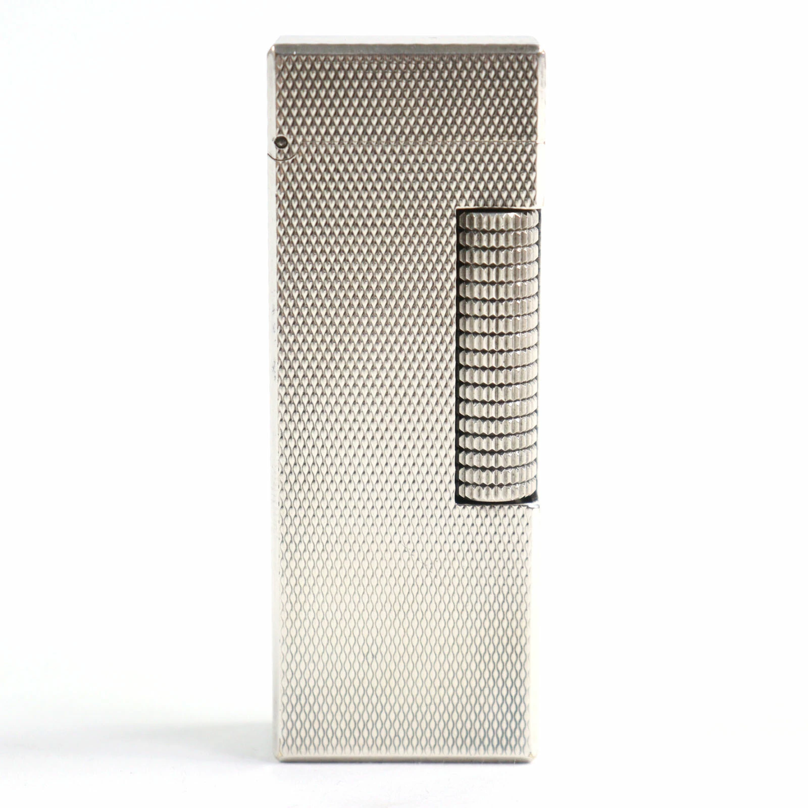 Excellent condition Dunhill all-over print square roller smoking accessory gas lighter, silver, Swiss made, ignition confirmed [pre-owned]